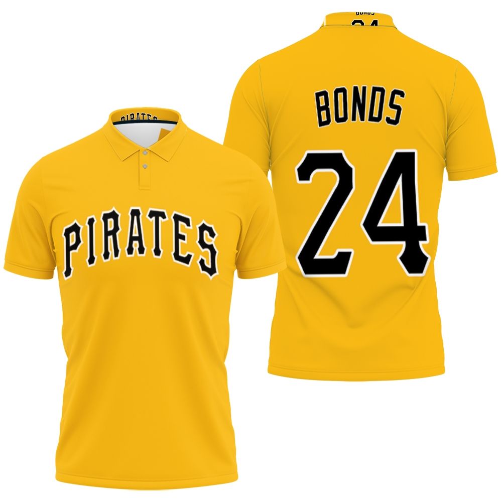 Pittsburgh Pirates Barry Bonds #24 Mlb Great Player Baseball Team Logo Majestic Official Gold 2019 Polo Shirt