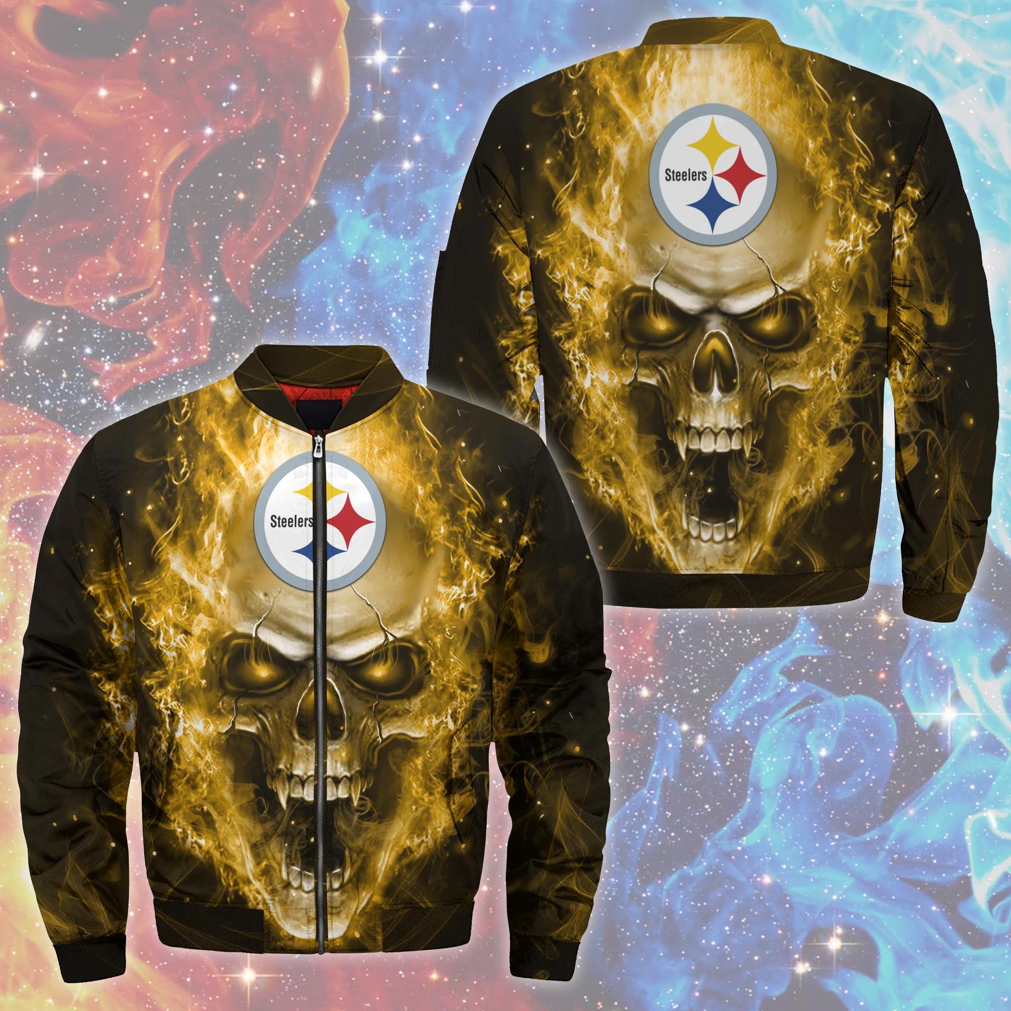 Pittsburgh Steelers Jacket Mens Skull Graphic