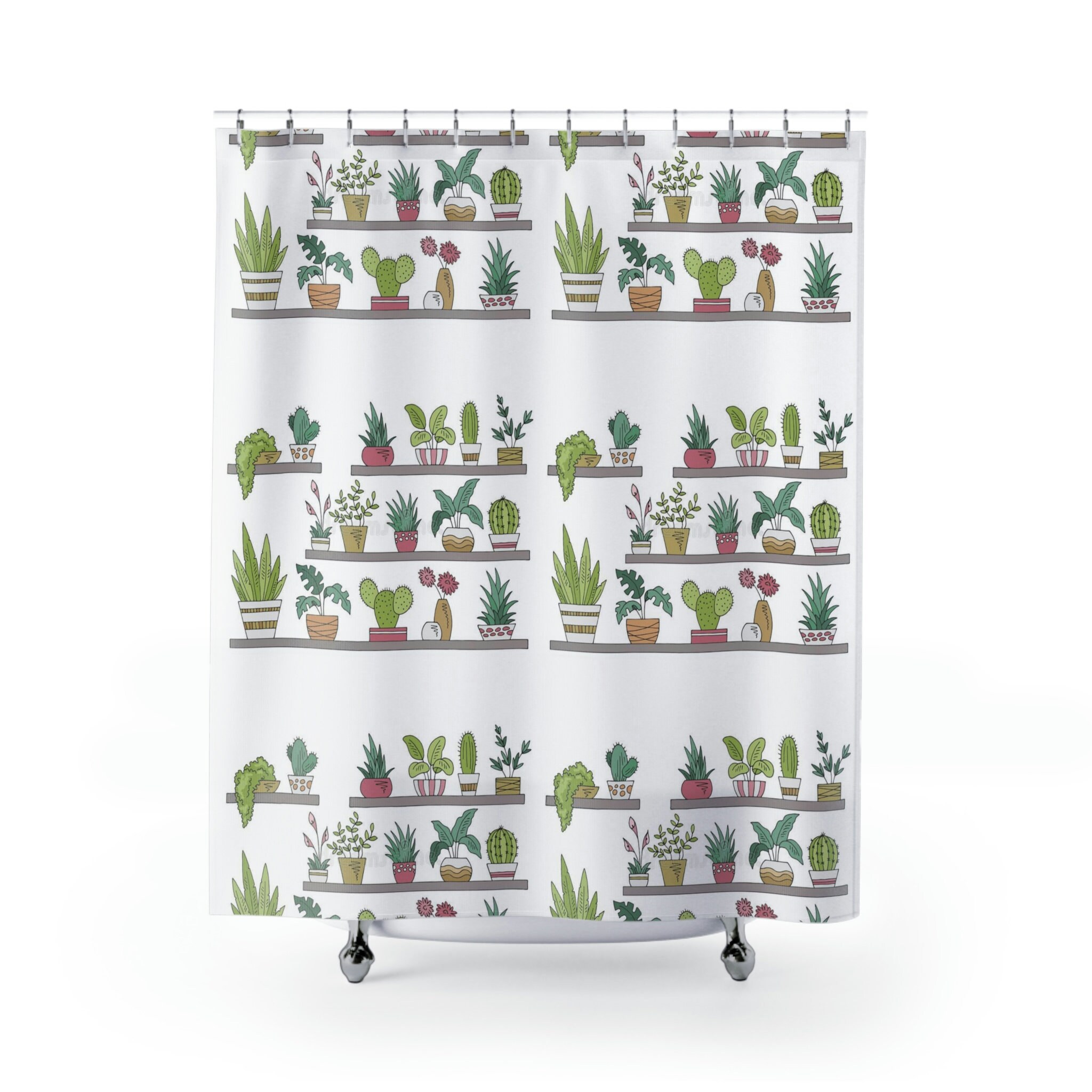 Plant Lover’s Boho Shower Curtain – Shelf Full of Green Cacti for Bathroom Decor