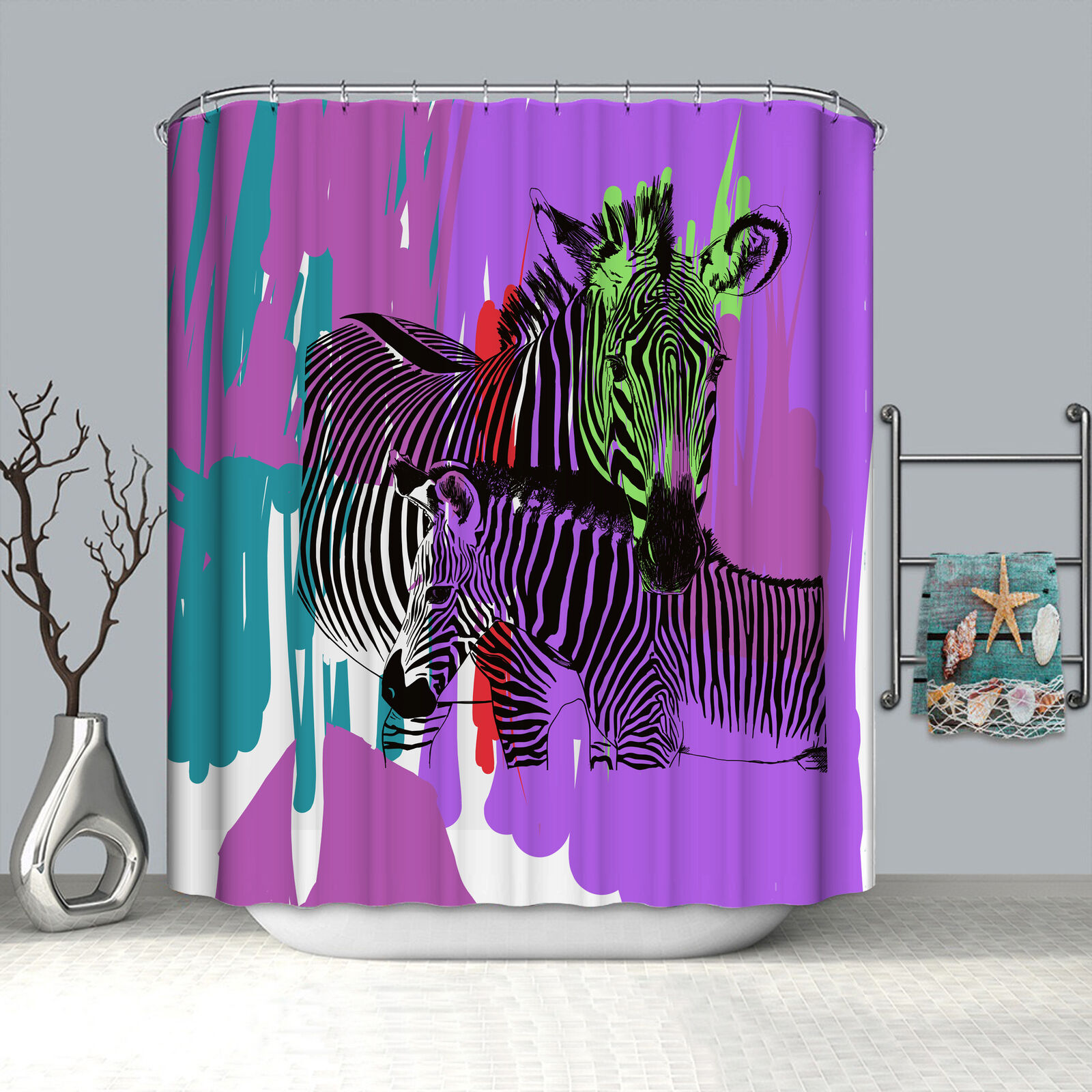Purple Abstract Graffiti Zebra Waterproof Shower Curtain for Stylish Bathroom Decor