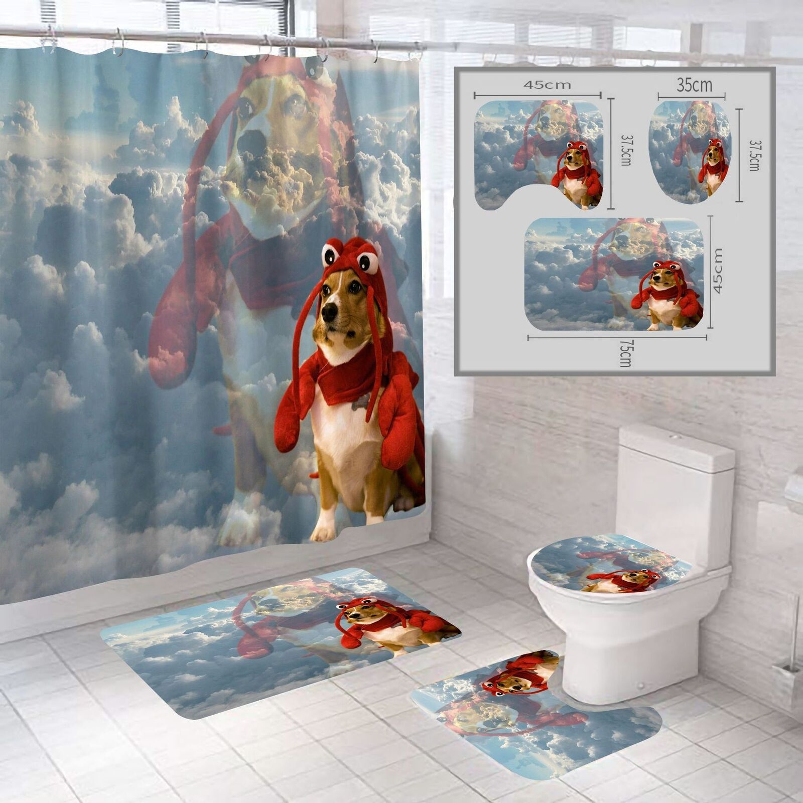 Quirky Shrimp – 3D Pet Dog Shrimp Sky Shower Curtain for Bathroom Decor