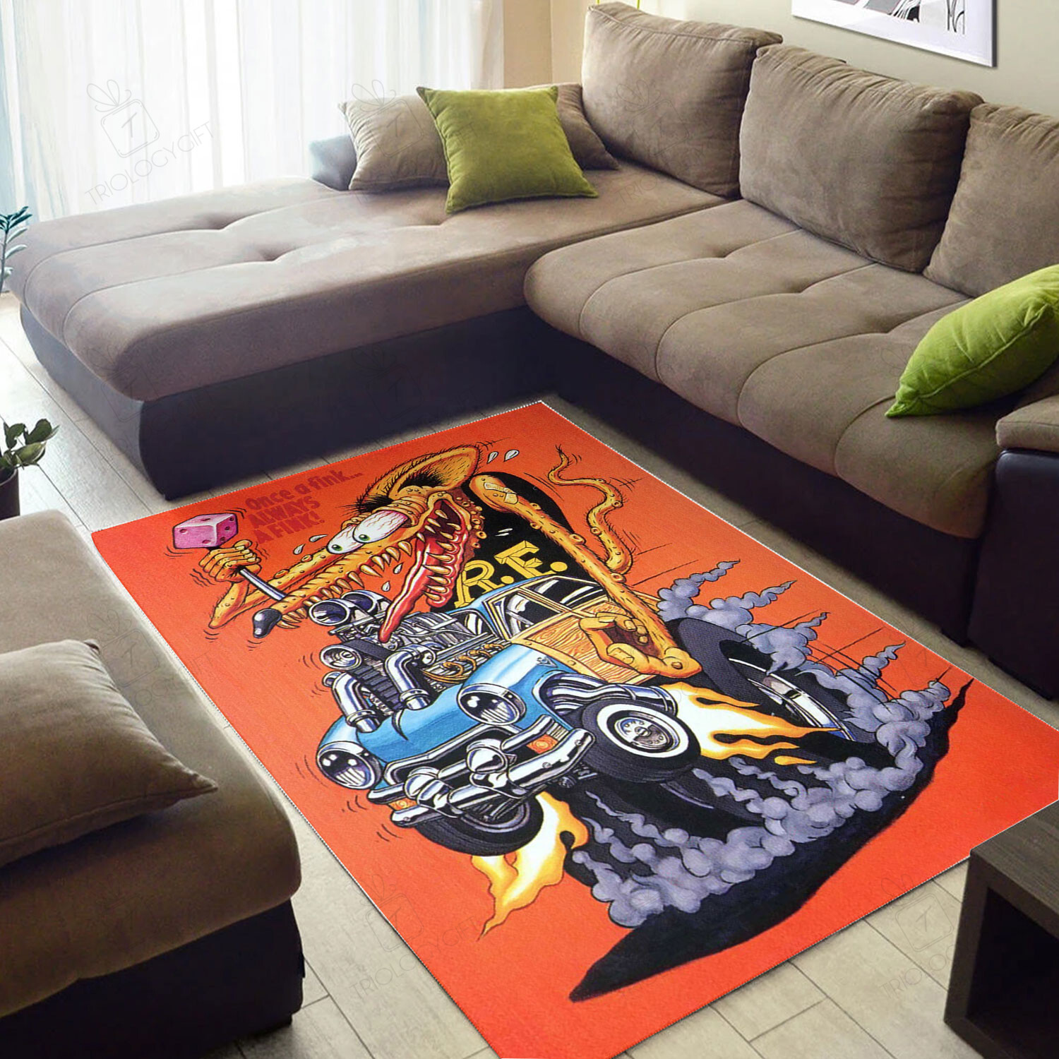 Unleash the rebellious spirit of Rat Fink with our striking Rat Fink Rug collection. Inspired by the iconic hot rod artist Ed “Big Daddy” Roth, these rugs feature edgy and eye-catching designs that bring a touch of vintage cool to any room. The Rat Fink Rug offers both style and durability, making it a bold statement piece for bedrooms, dens, and garage spaces. Embrace the counterculture vibe and pay homage to the legendary Rat Fink with this unique rug. Perfect for car enthusiasts, collectors, and those seeking an edgy touch to their decor. Upgrade your space with the Rat Fink Rug and celebrate a classic symbol of American subculture.