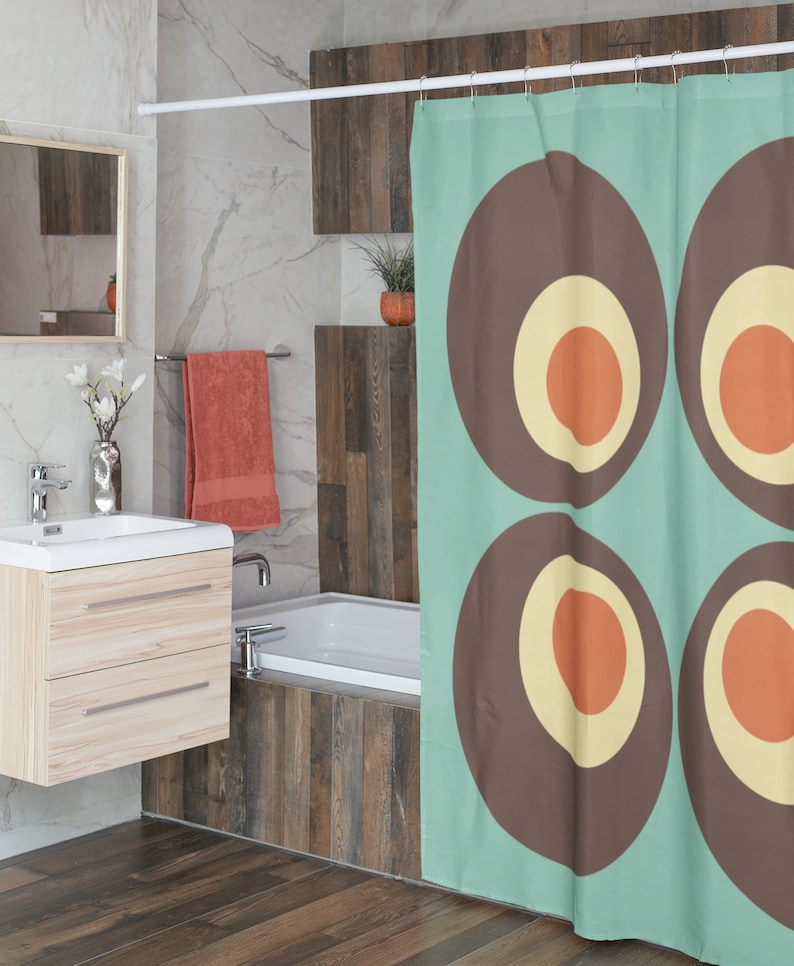 Retro 70’s Shower Curtain, Groovy 60’s 70’s Geometric Hippie Shower Accessory, Retro Bathroom Curtain