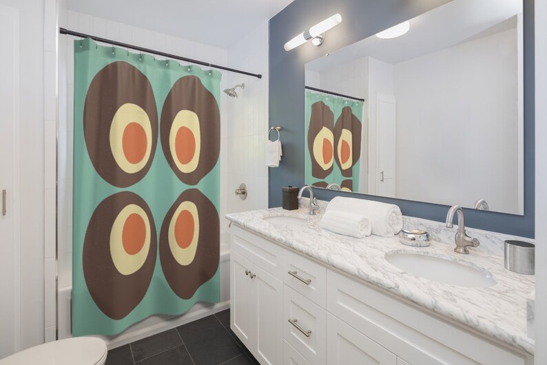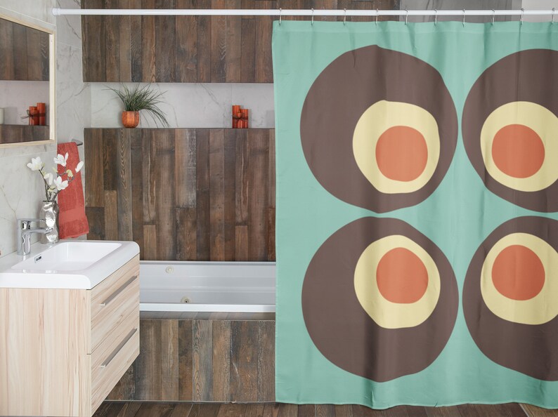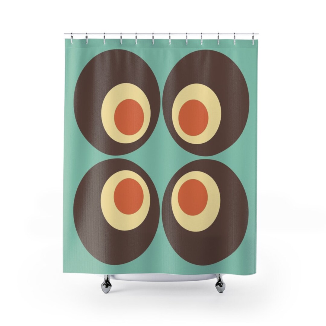Retro 70’s Shower Curtain, Groovy 60’s 70’s Geometric Hippie Shower Accessory