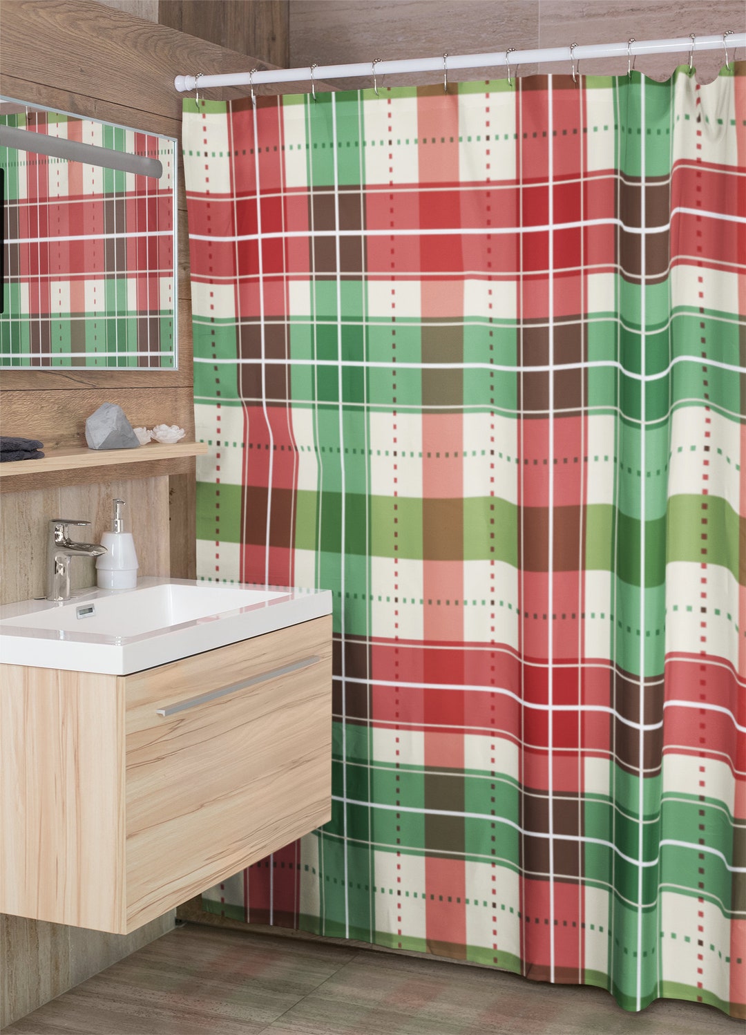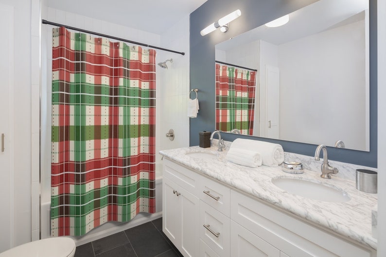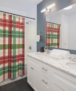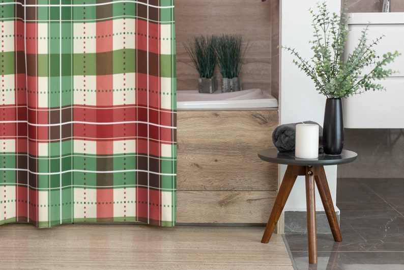 Retro Buffalo Plaid Christmas Modern Shower Curtain, Christmas Gift For Home, Shower Curtain, Retro Bathroom Accessories, Home Gift