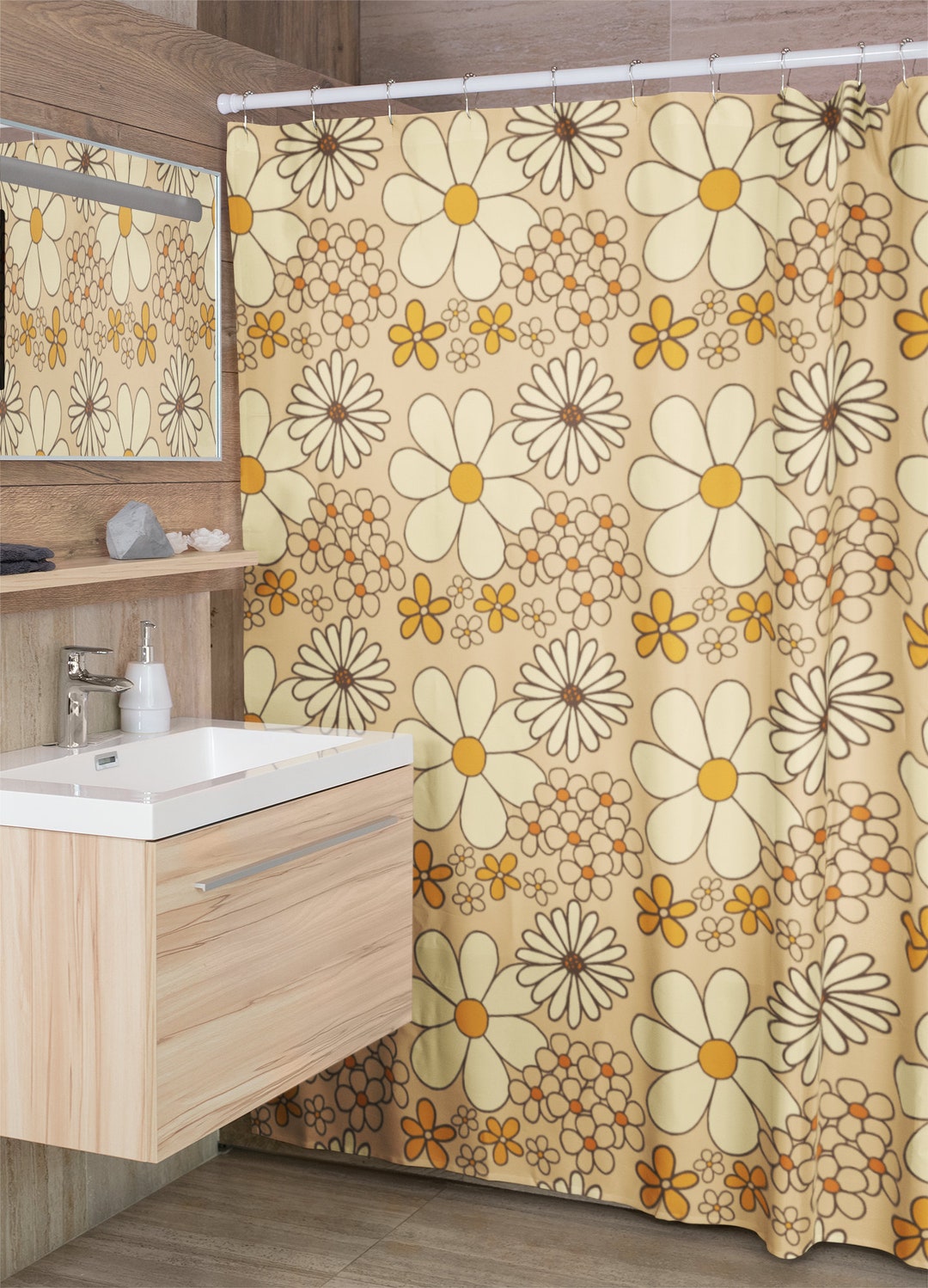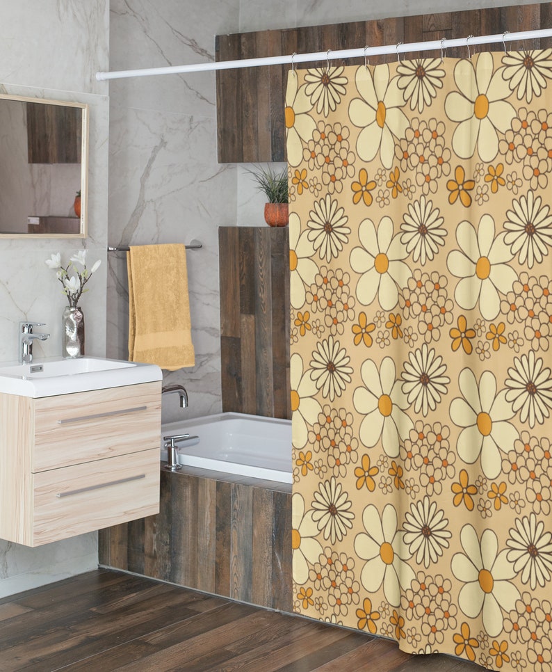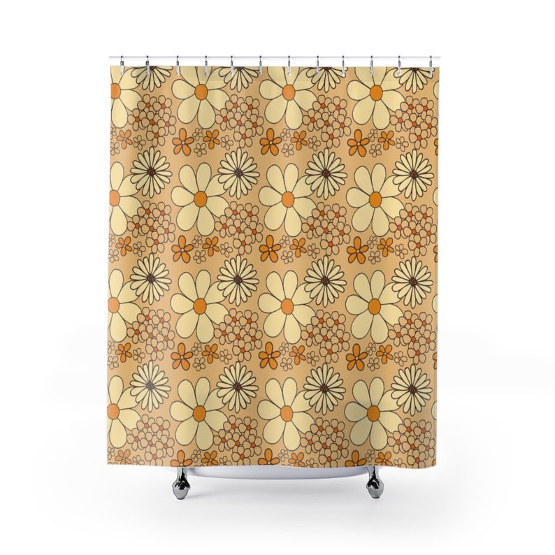 Retro Flowers Mod Boho 1970’s Shower Curtain, Hippie Groovy Shower Curtain
