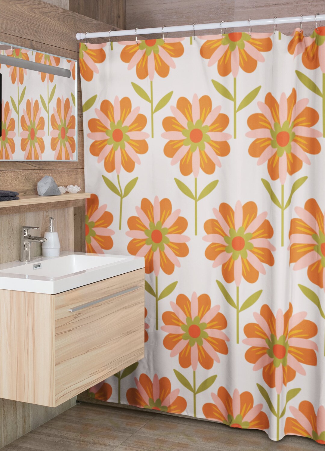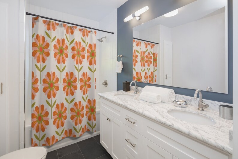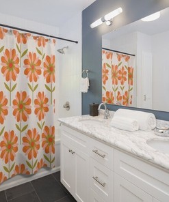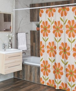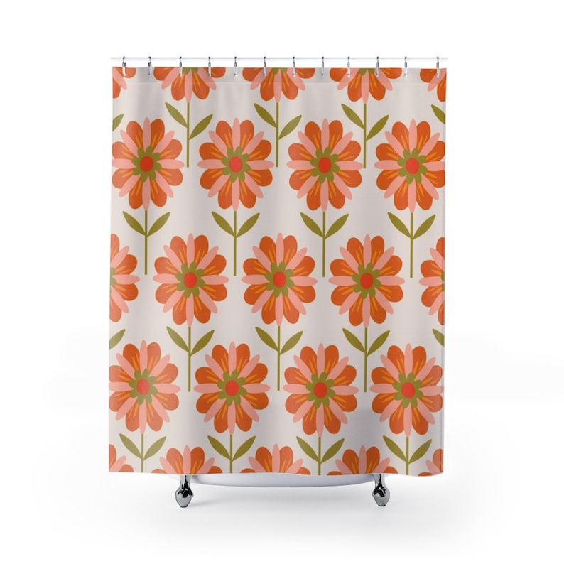 Retro Flowers Shower Curtain, Groovy 60’s 70’s Hippie Shower Accessory Bath Decor, Retro Bathroom Curtain