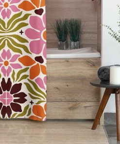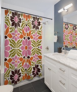 Retro Flowers Shower Curtain, Groovy 60’s 70’s Hippie Shower Accessory Bathroom Decor