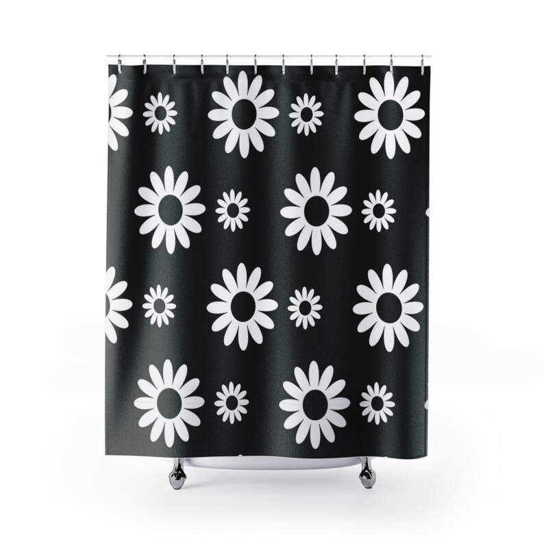 Retro Flowers Shower Curtain, Groovy 60’s 70’s Hippie Shower Accessory, Retro Bathroom Curtain Gift