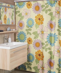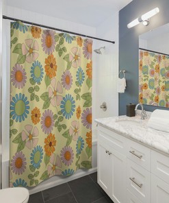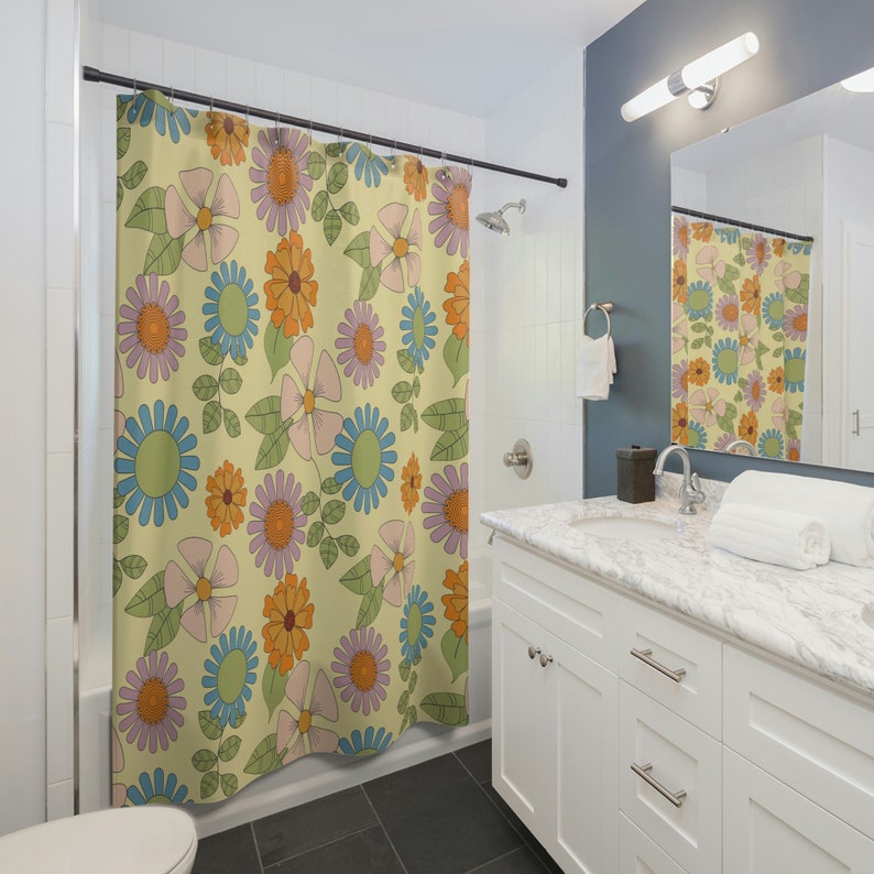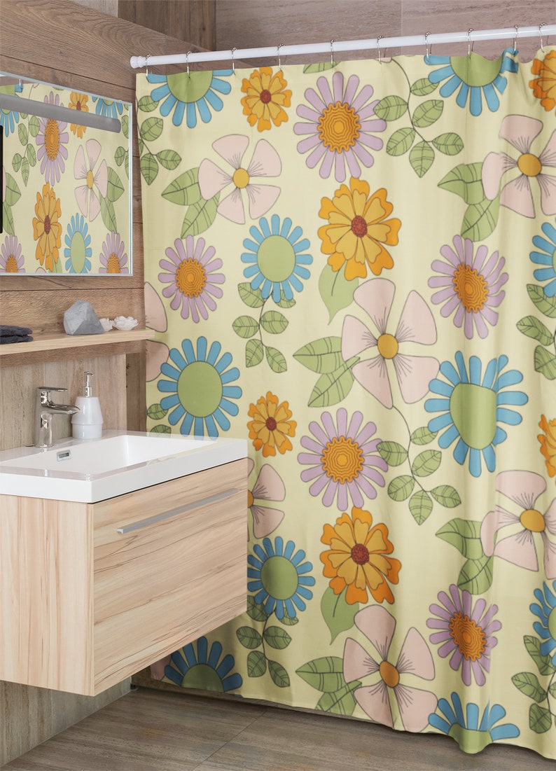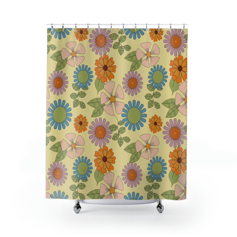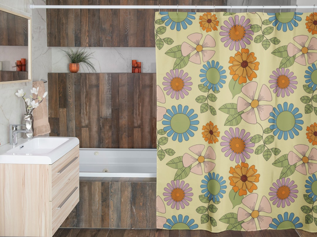 Retro Flowers Shower Curtain, Groovy 60’s 70’s Hippie Shower Accessory, Retro Bathroom Curtain, Tub Curtain