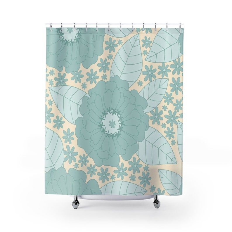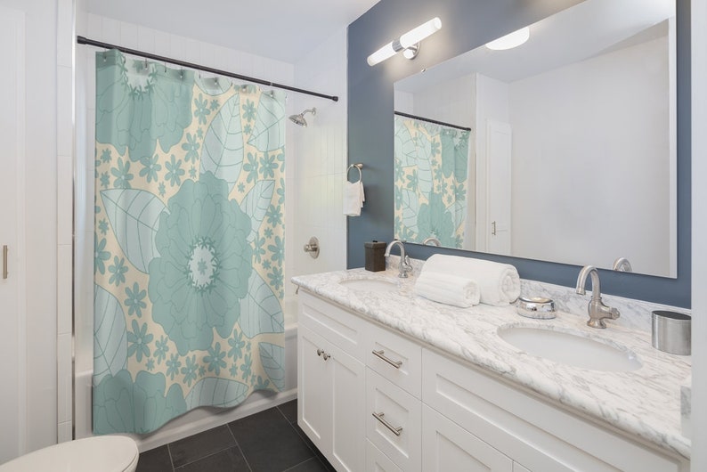 Retro Flowers Shower Curtain, Groovy 60’s 70’s Hippie Shower Accessory Retro Bathroom Curtain