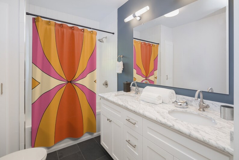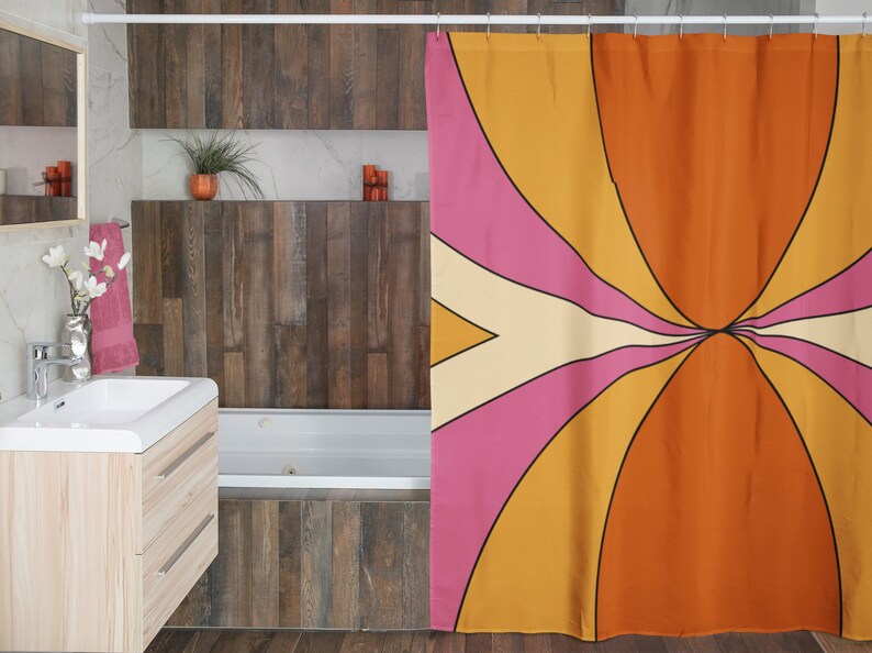Retro Shower Curtain, Groovy 60’s 70’s Hippie Shower Accessory Bath Decor, Retro Bathroom Curtain