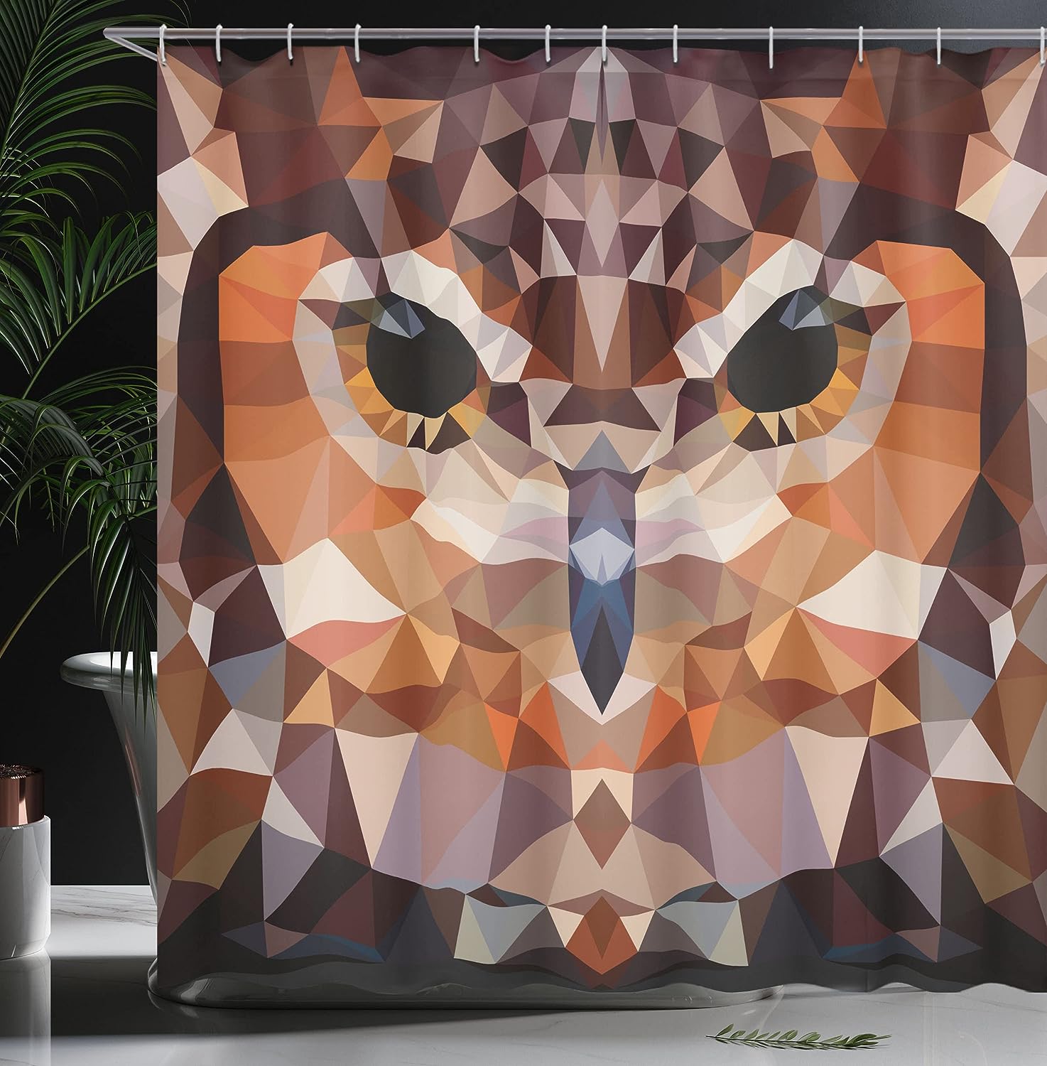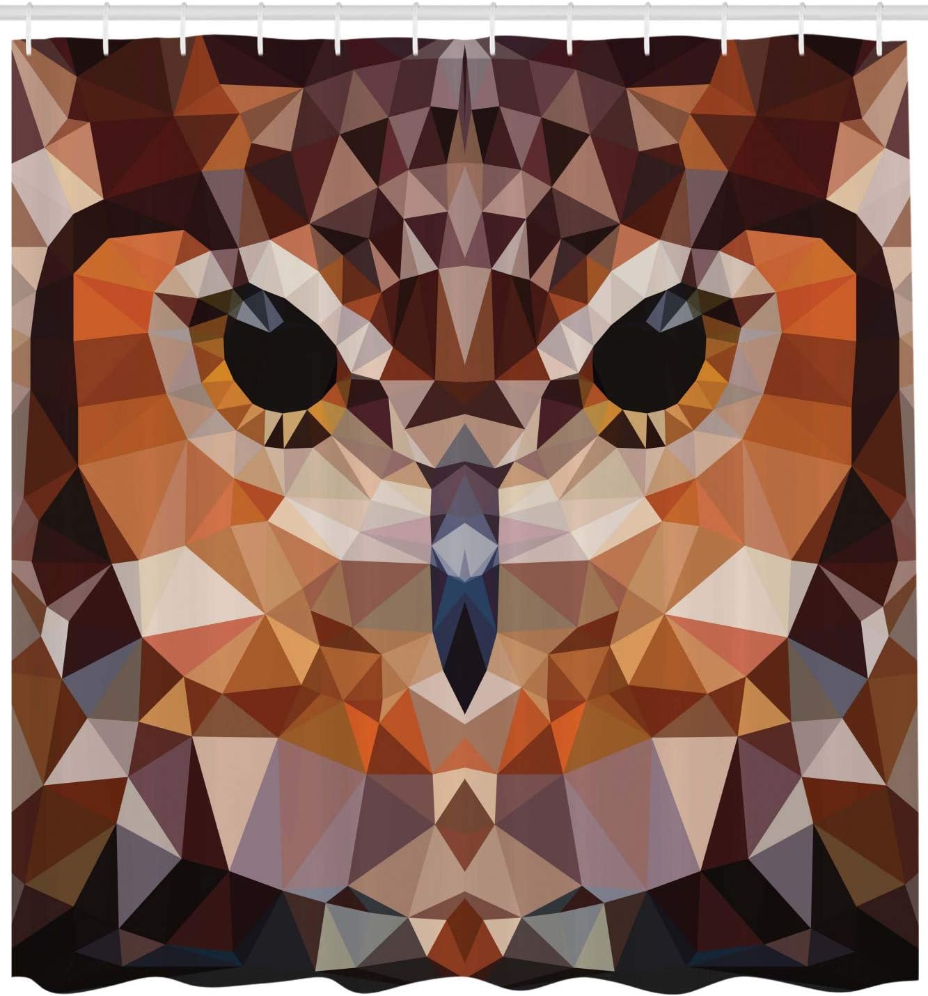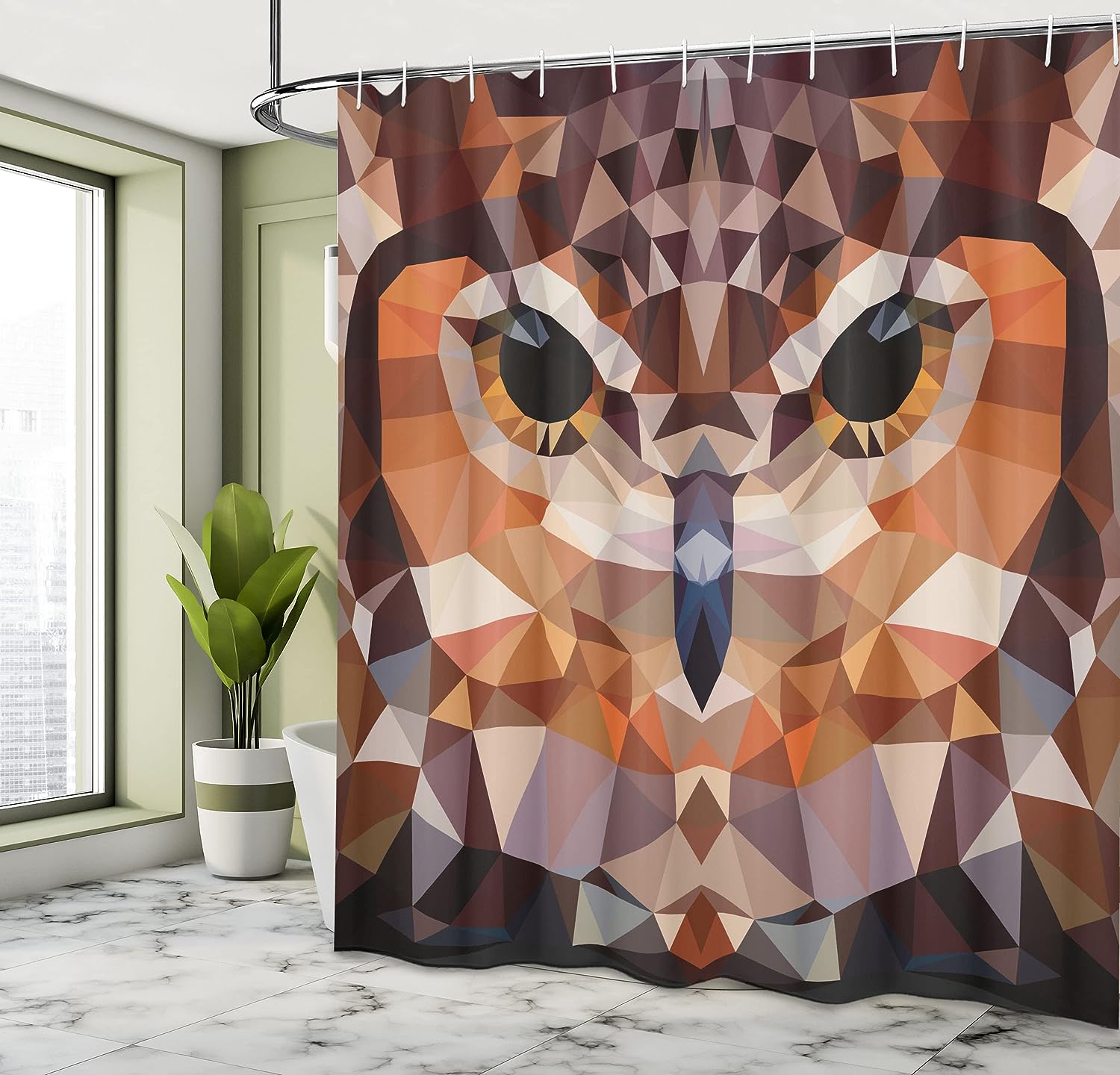 Retro Style Geometric Owl Head Shower Curtain with Funk Boho Design for Bathroom Decor
