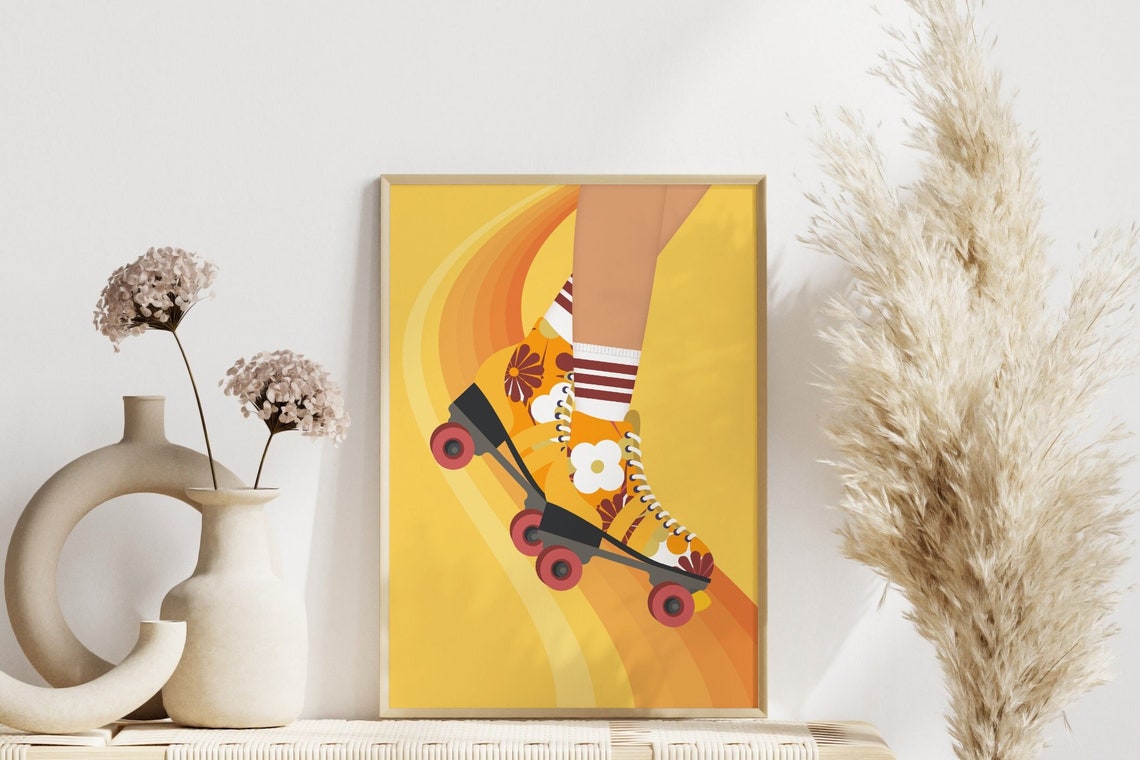 Roller Skate Motivational Quote Aesthetic Vintage 70s Poster Wall Art Canvas Prints
