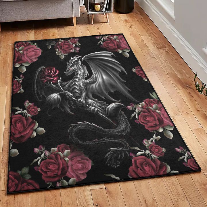 Rose Indoor Outdoor Rugs, Roses And Dragon Rug, Dragon Area Rug, Dragon Themed Rugs, Gift For Dragon Lovers, Personalized Rug, Carpet For Living Room, Bedding Room Home Decor DG146