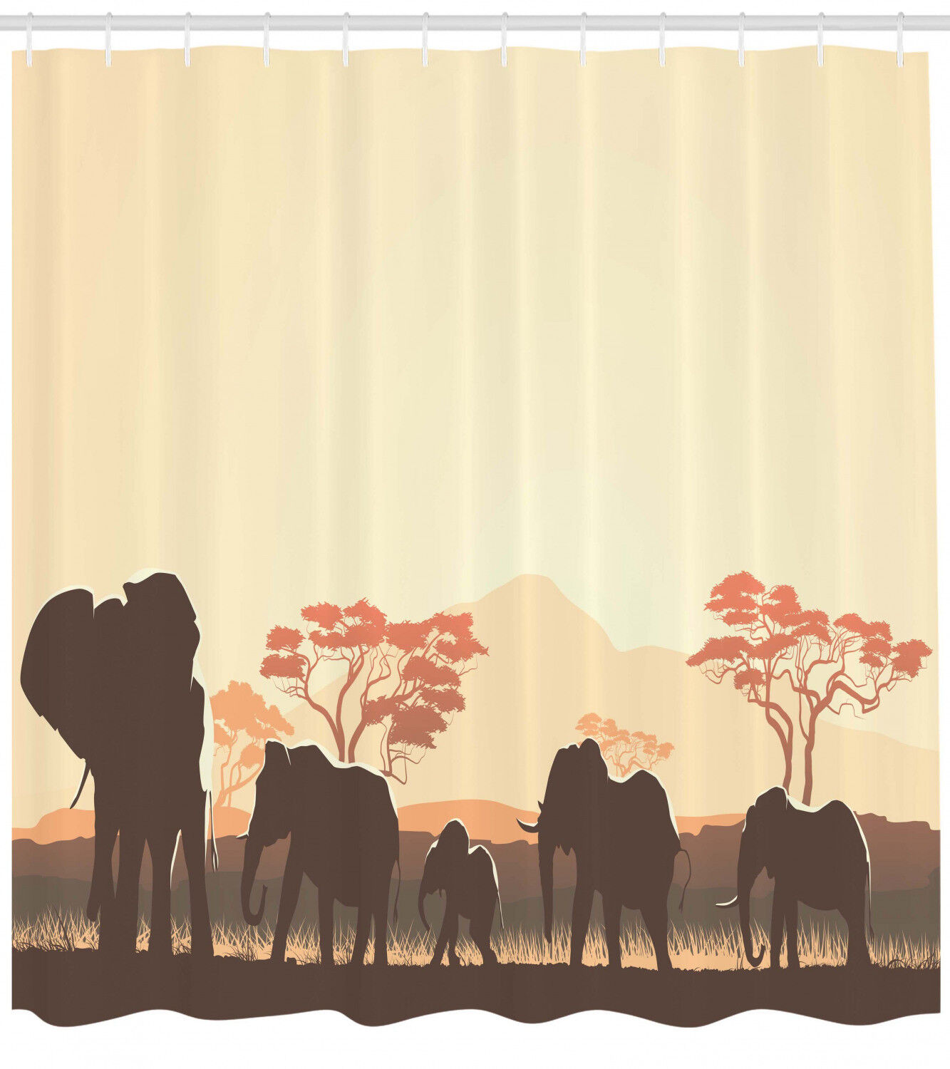 Safari Animal Elephant African Shower Curtain with Wildlife Print for Bathroom Decor