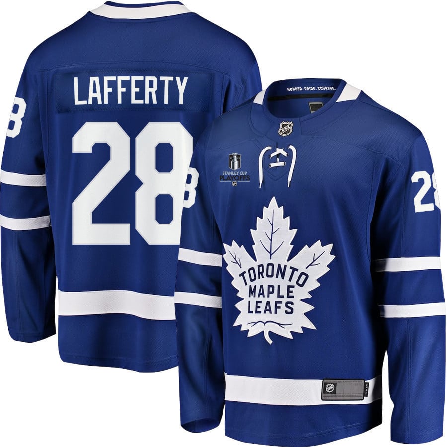 Sam Lafferty 28 Toronto Maple Leafs Stanley Cup 2023 Playoffs Patch Home Breakaway Men Jersey – Blue
