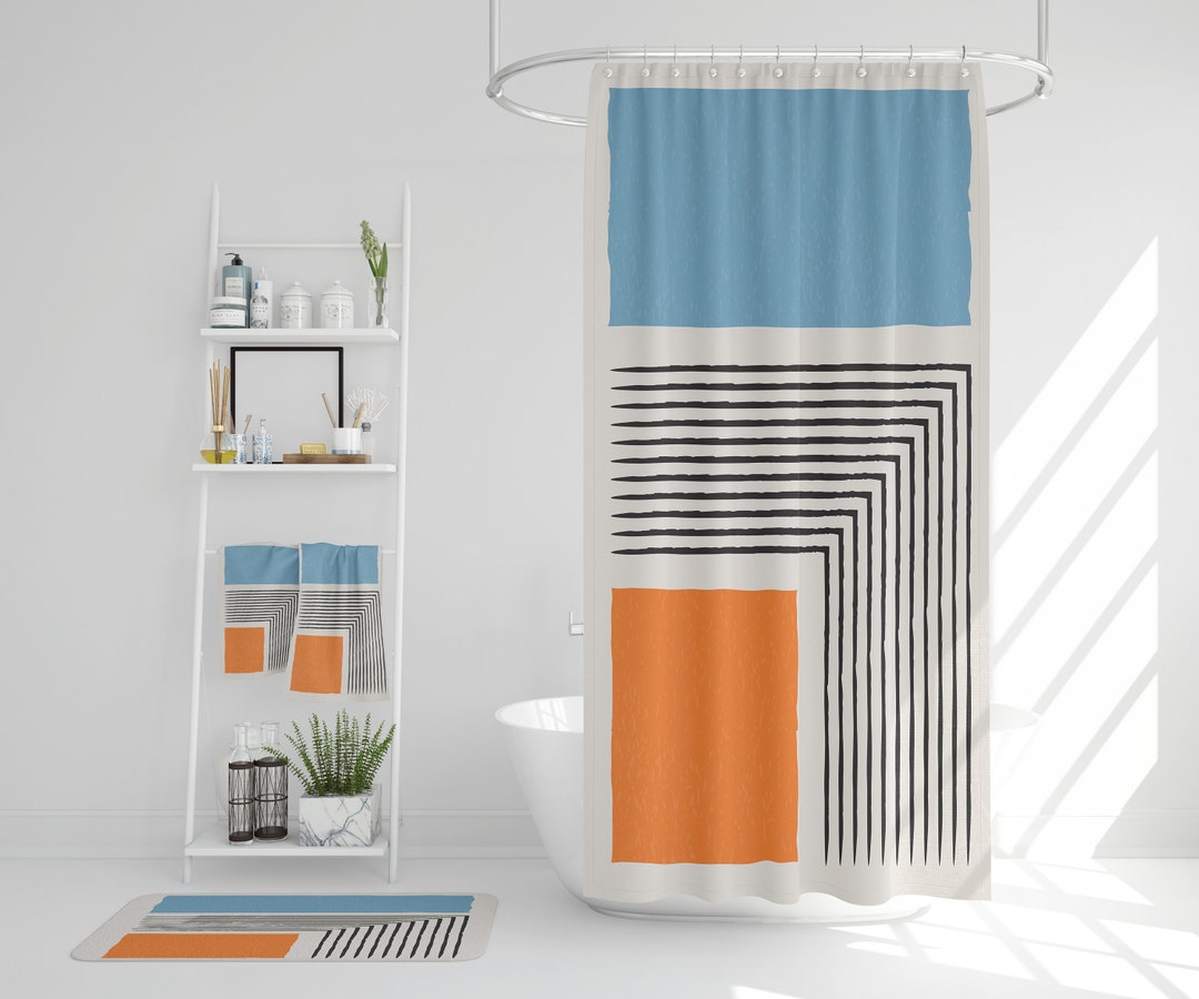 Scandinavian Bathroom Decor, Shower Curtain, Bath Mat, Spa Wrap, Waffle Weave Shower Curtain, Hand Towel, Bath Towel, Boho Bathroom