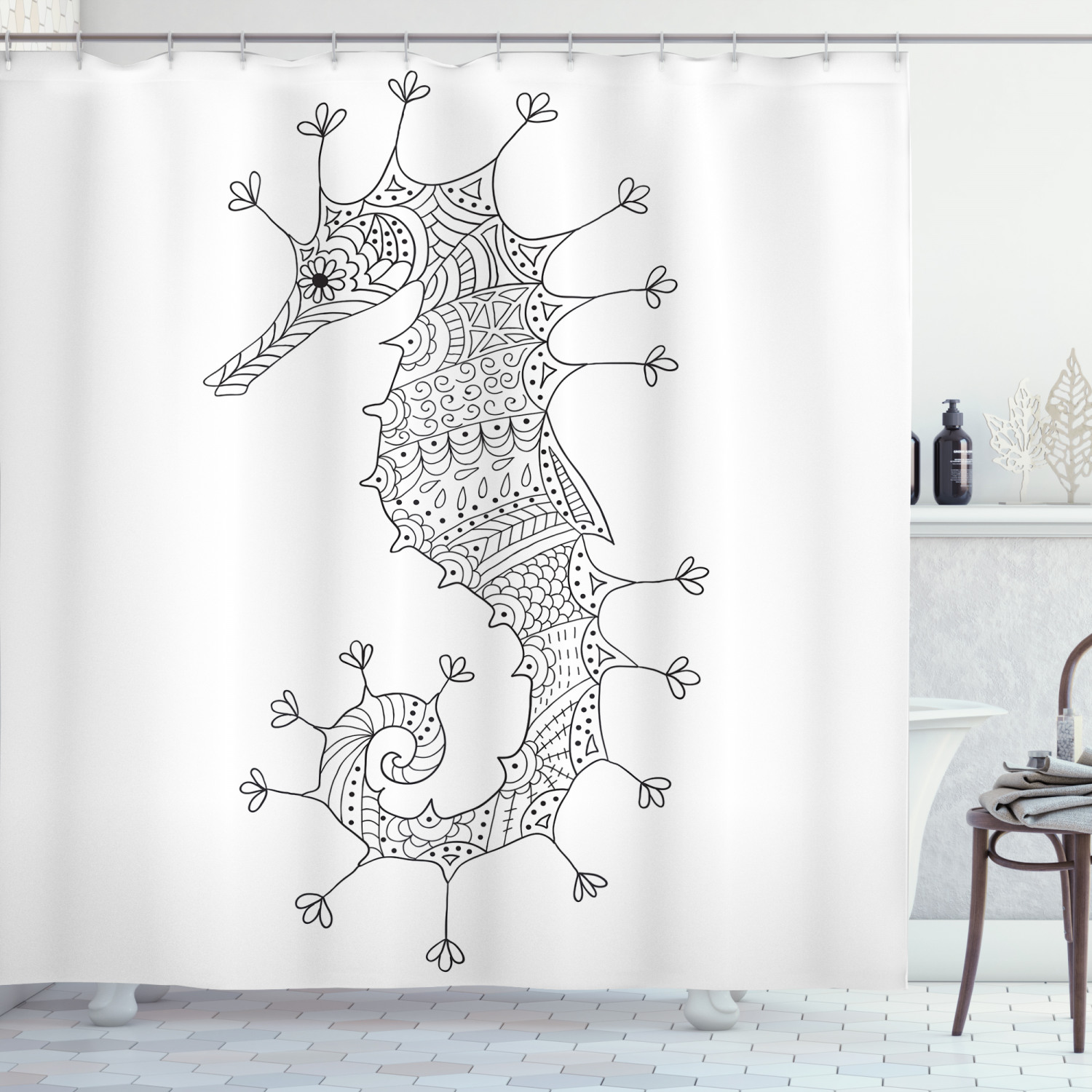 Seahorse Heraldic Art Shower Curtain for Bathroom Decor – Animal Print