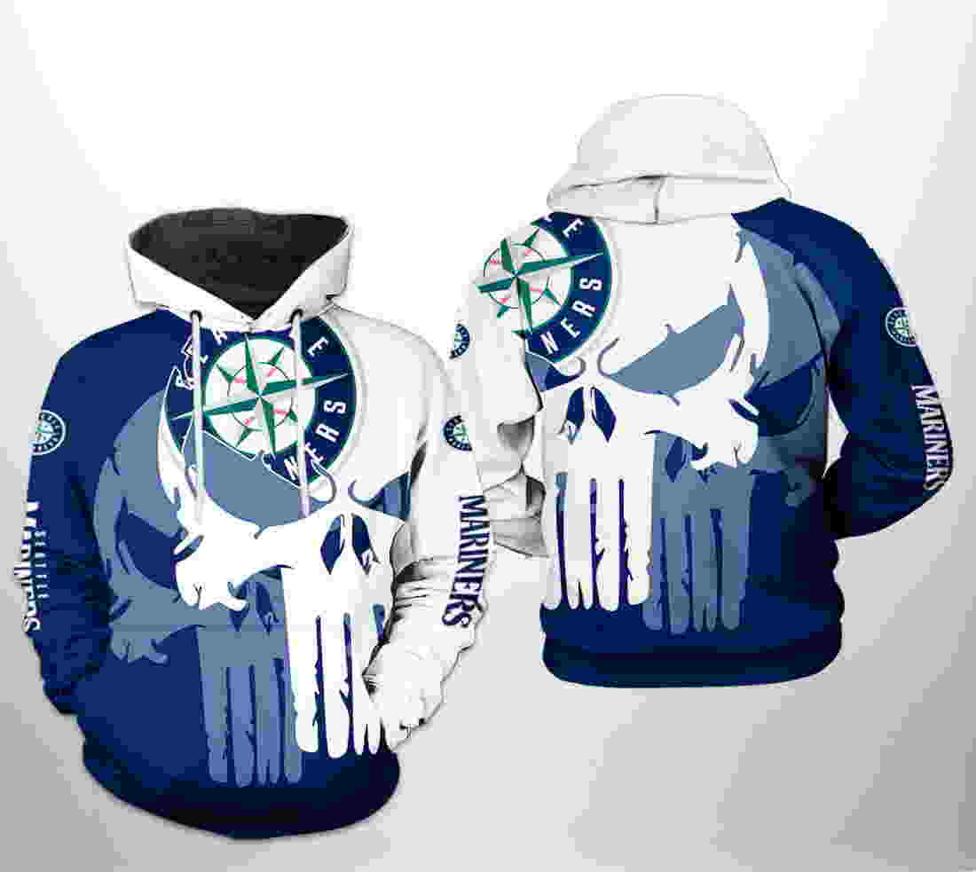 Seattle Mariners MLB Team Skull 3D Hoodie Zipper Hoodie