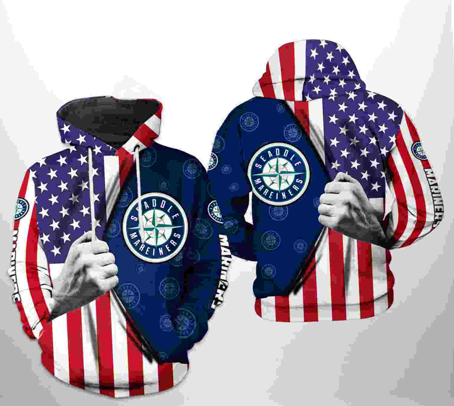 Seattle Mariners MLB US Flag 3D Hoodie Zipper Hoodie