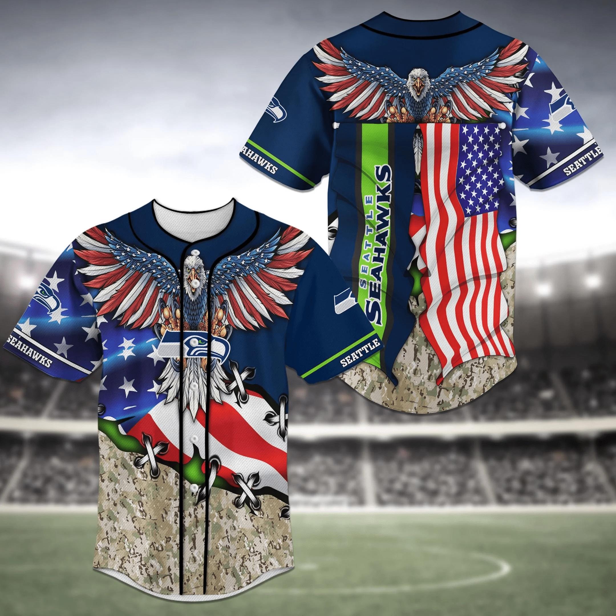 Seattle Seahawks NFL US Flag Eagle Baseball Jersey Shirt