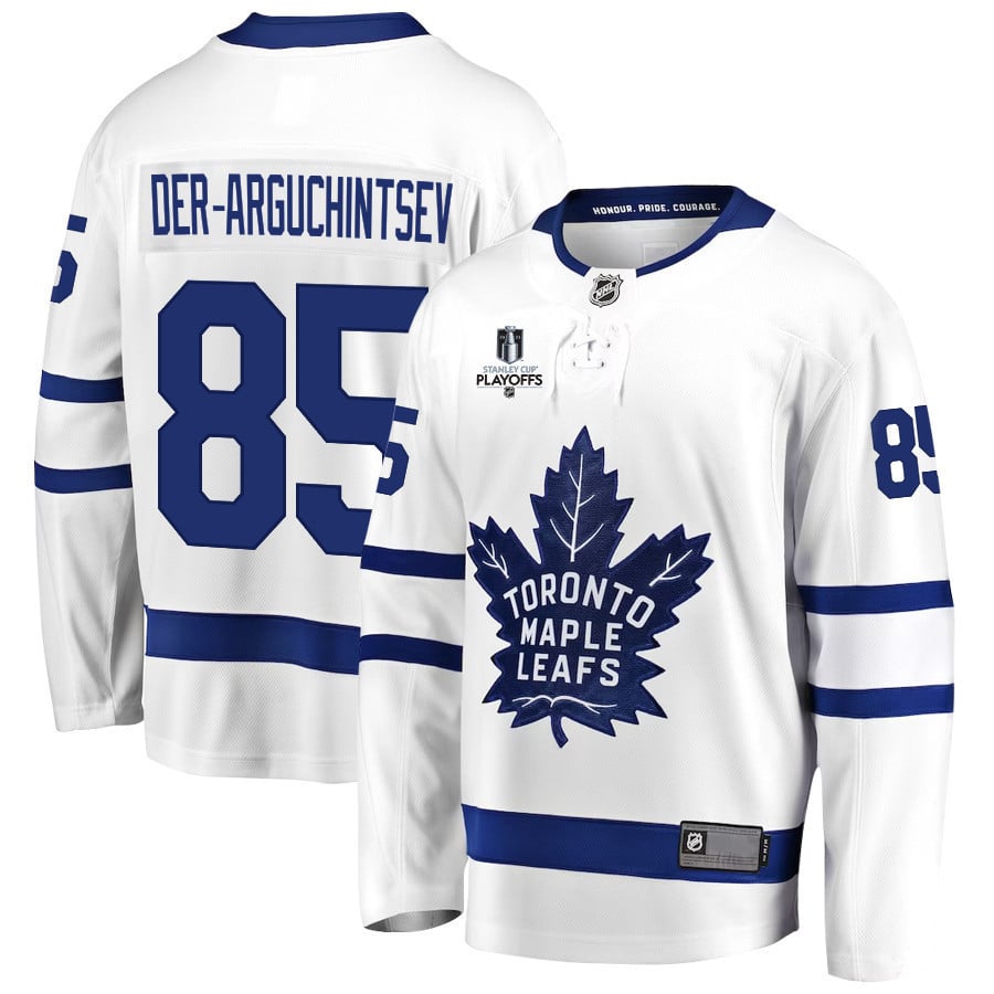 Semyon Der-Arguchintsev 85 Toronto Maple Leafs Stanley Cup 2023 Playoffs Patch Away Breakaway Men Jersey – White