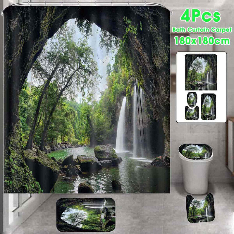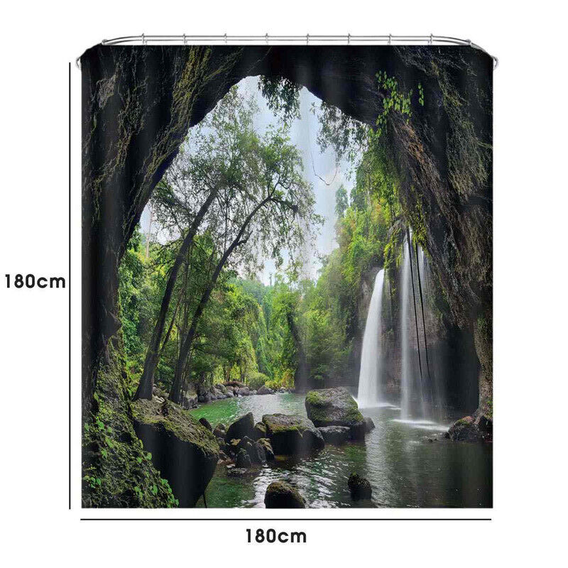 Serene Waterfall – 3D Landscape Forest Waterfall Shower Curtain for Bathroom Decor