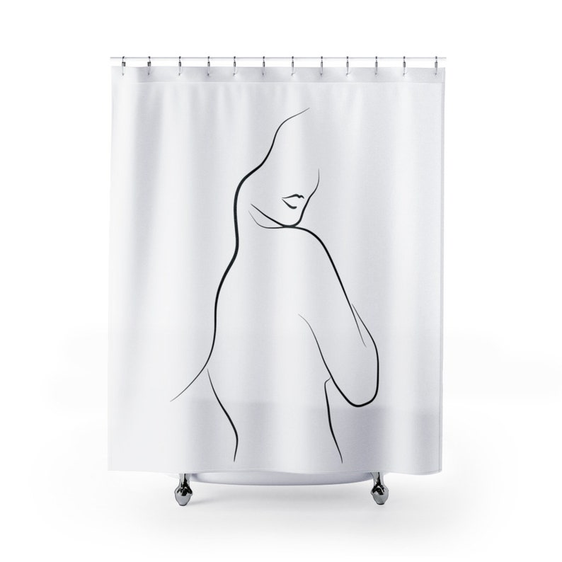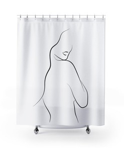 Sexy Lady Shower Curtain, Feminine Nude Line Art Bath Curtain, Bathroom Decor For Women And Girls