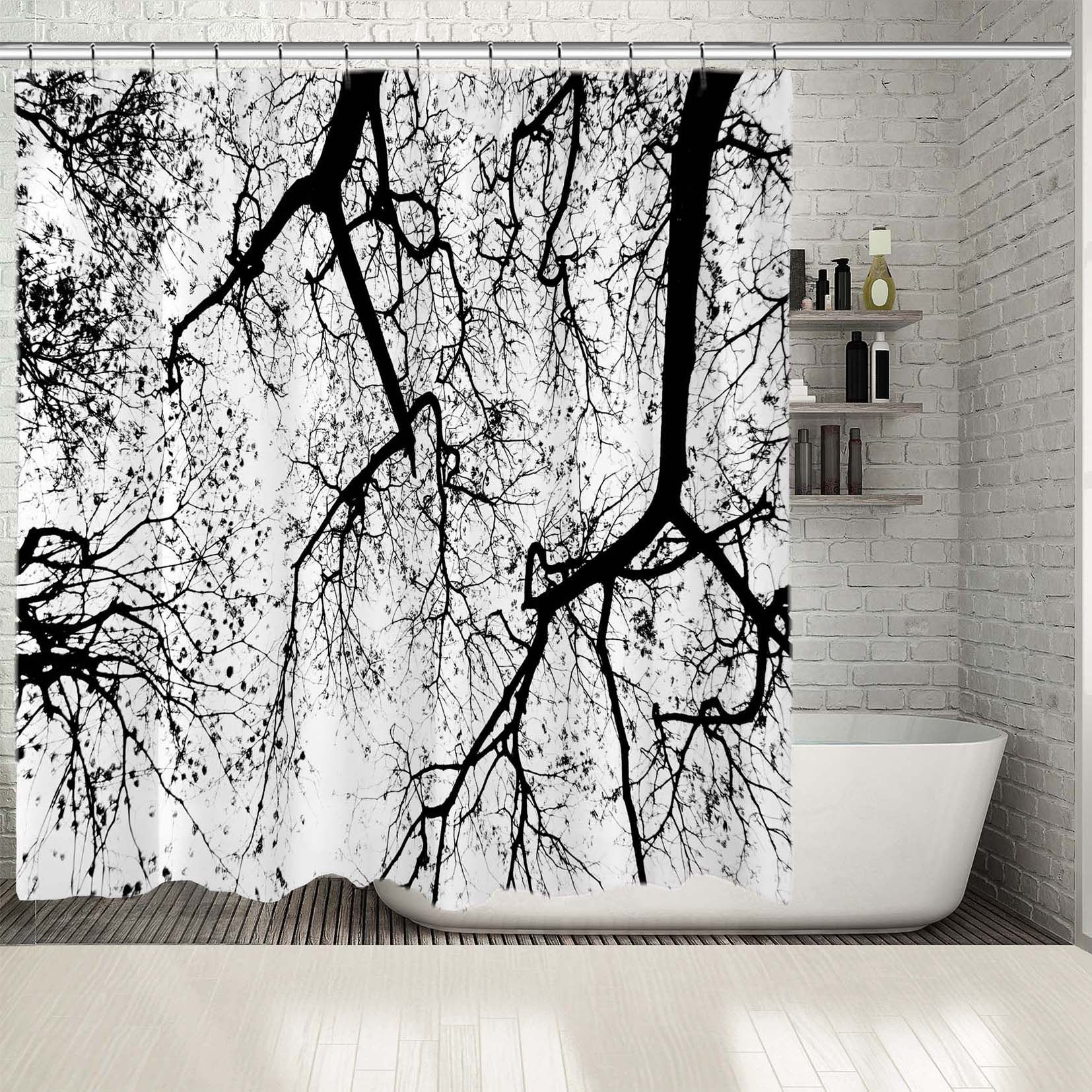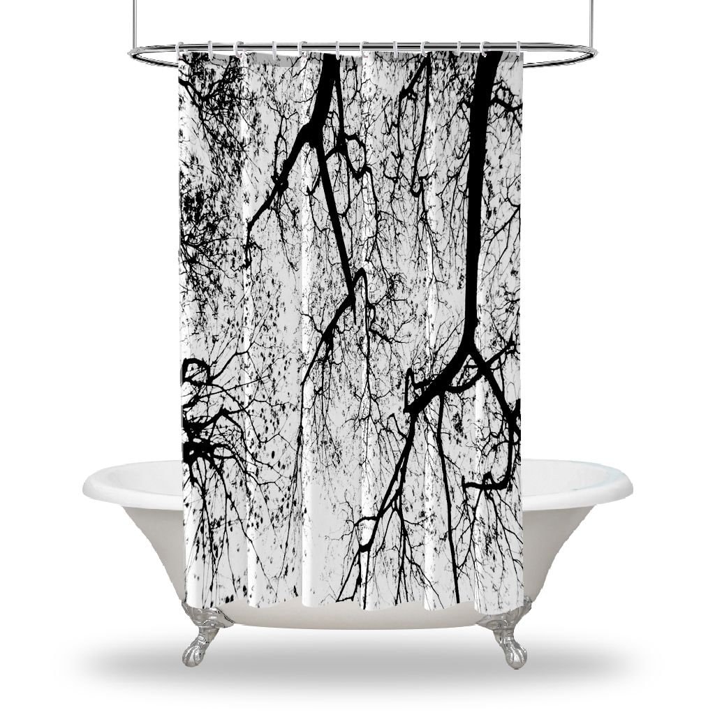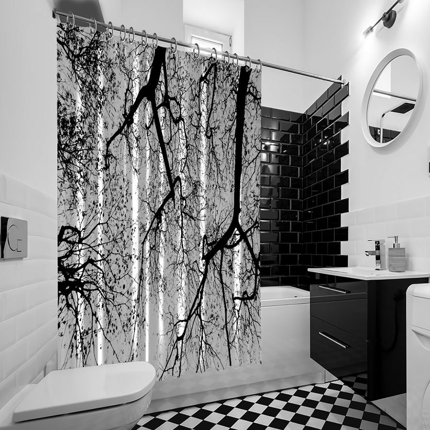 Silhouette of Tree Artistic Print on Waterproof Button Hole Shower Drapes for your Bathtub