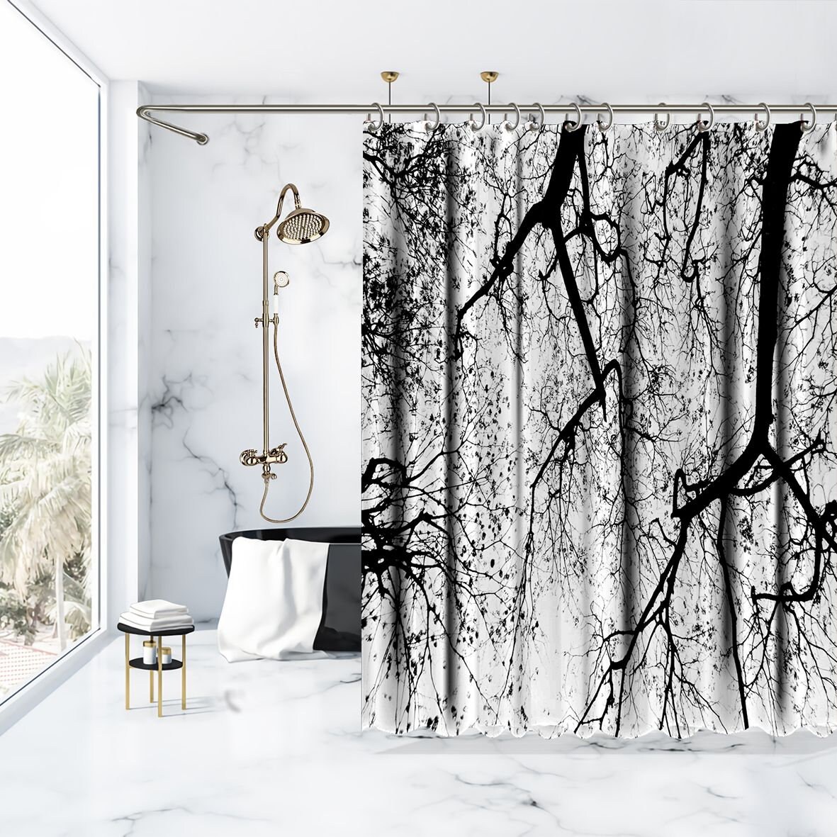 - The curtain is made of 100% polyester fabric, making it waterproof and quick-drying. This not only ensures that the curtain can effectively prevent water spray while you are taking a shower, but also guarantees that the fabric remains in good condition, even after prolonged use.