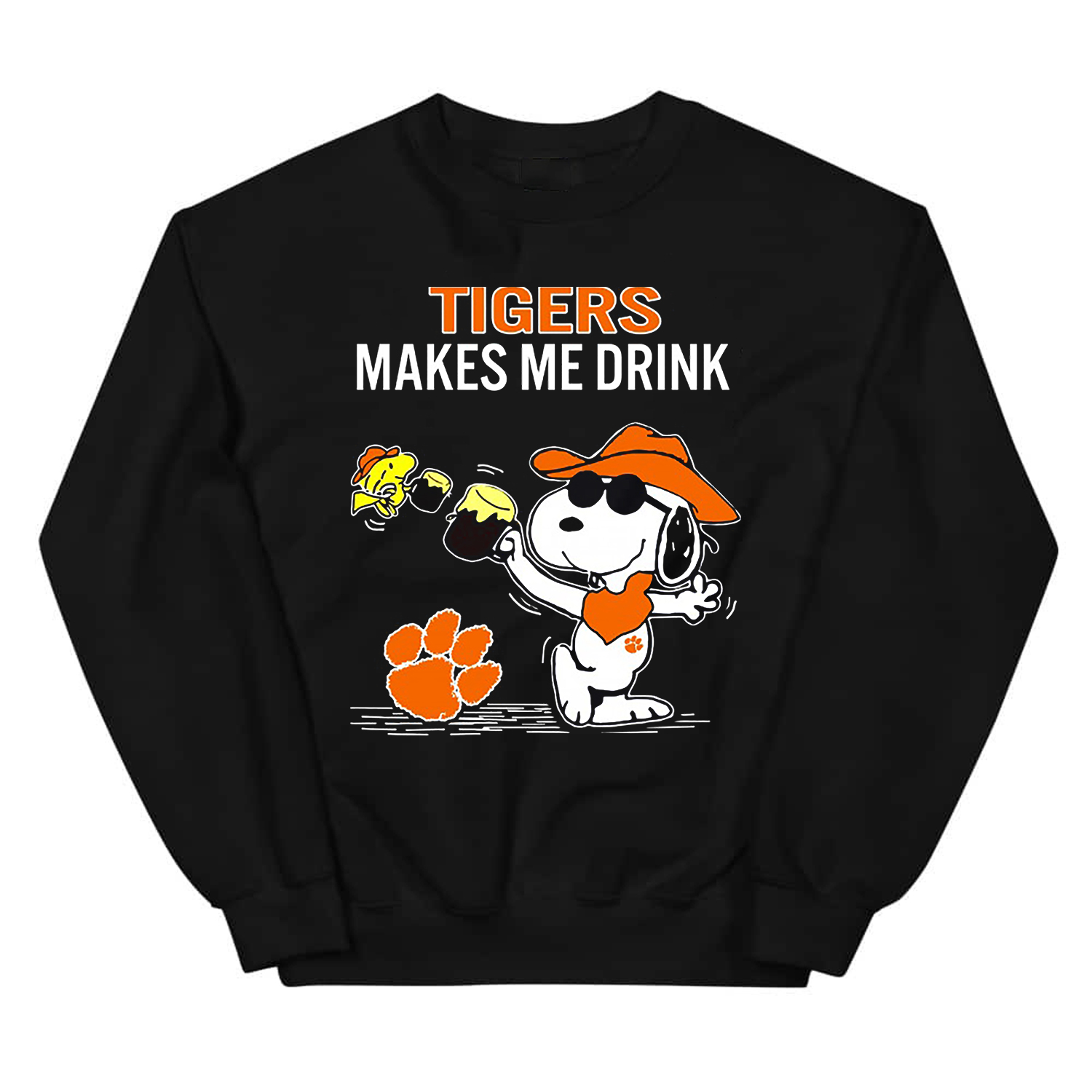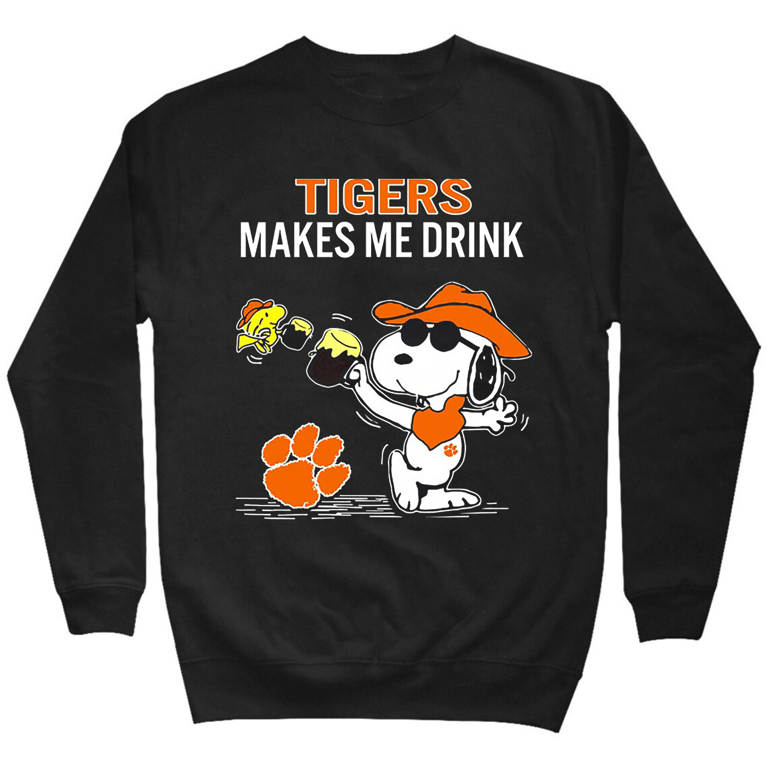Snoopy and Woodstock Clemson Tigers NCAA T-Shirt Hoodie Sweatshirt Make Drink for Fans Gift