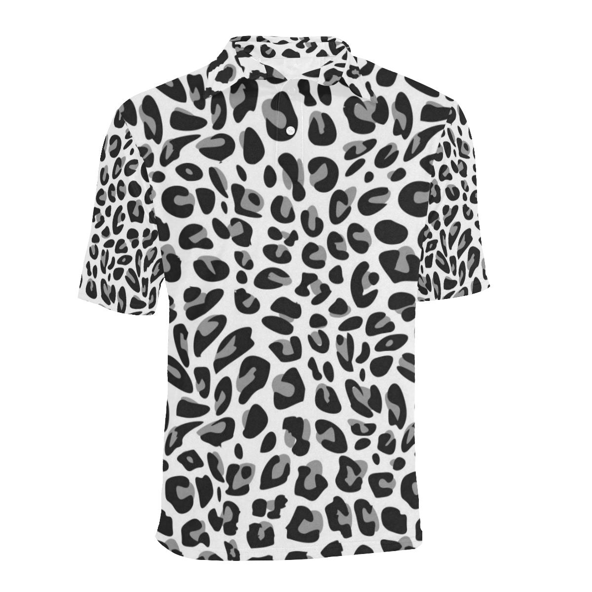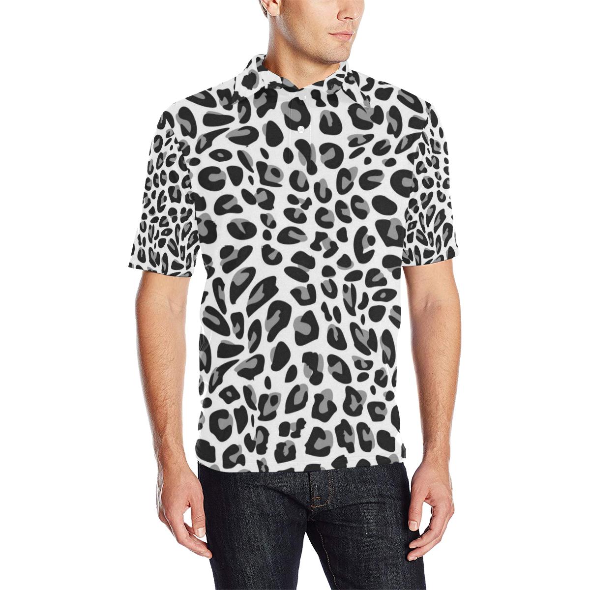 Snow Leopard Skin Print Men Polo Shirt
