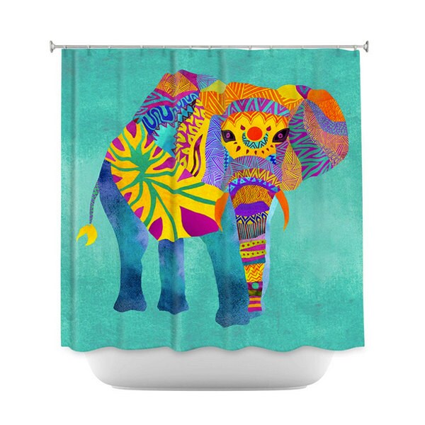 Spice up your Home Decor with Whimsical Elephant Aqua Ethnic Multicolor Artistic Shower Curtain