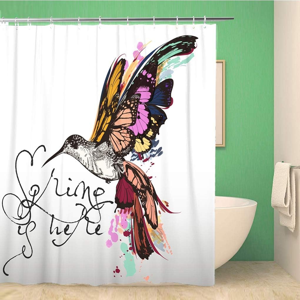 Spring Hummingbird and Colorful Butterfly Wings Shower Curtain, Waterproof Fabric, Home and Bathroom Decor