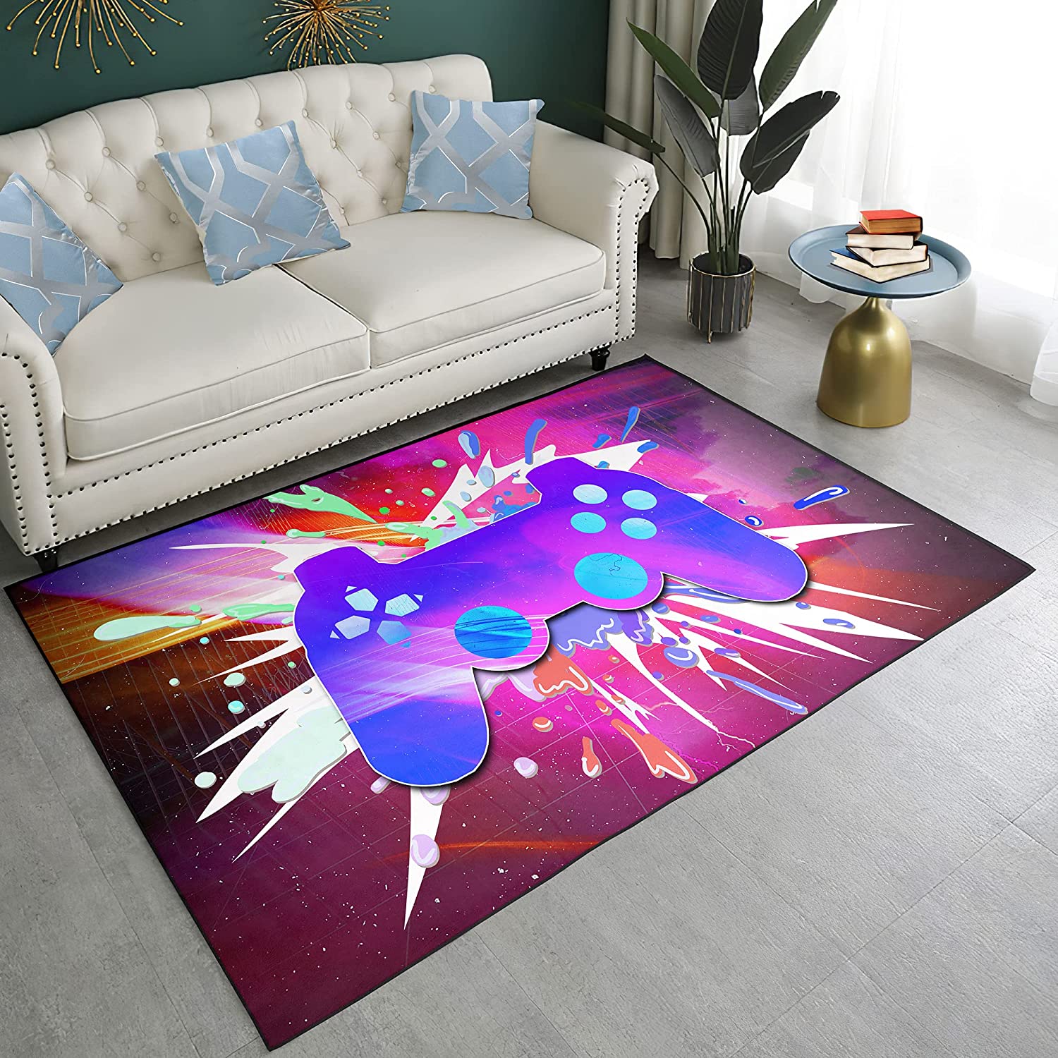 Starry Sky Galaxy Printed Gamer Carpet Decor Area Rug, Non-Slip Polyester Floor Mat for Living Room Bedroom Boys Teens