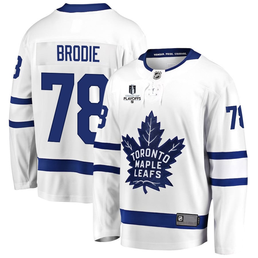 T.J. Brodie 78 Toronto Maple Leafs Stanley Cup 2023 Playoffs Patch Away Breakaway Men Jersey – White