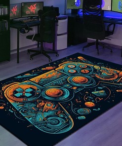 Teen Boys Shufflezone Game Rug – Personalized Area Rug for Game Room or Bedroom – Gaming Carpet with Controller Design M31