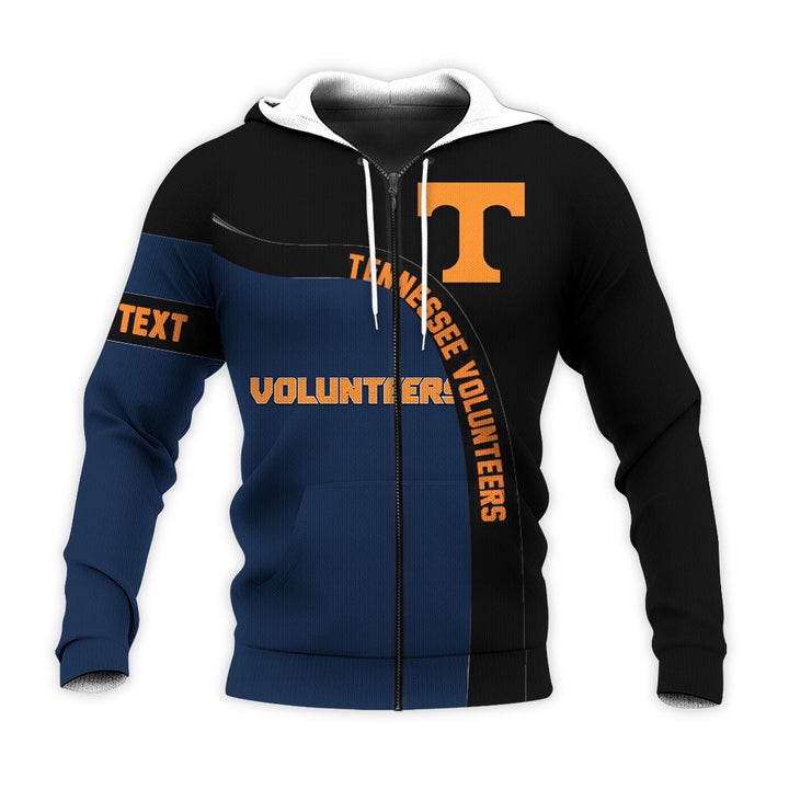 Tennessee Volunteers Custom Text Number Blue Black Unisex 3D All Over Print Hoodie, NCAA Zip Up Hoodie