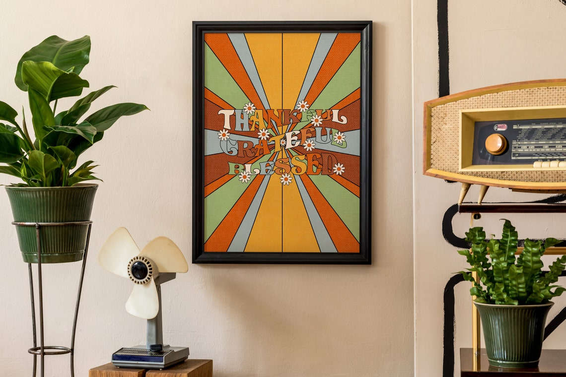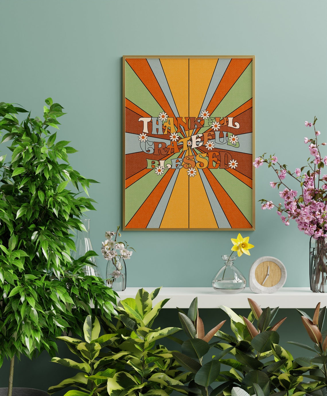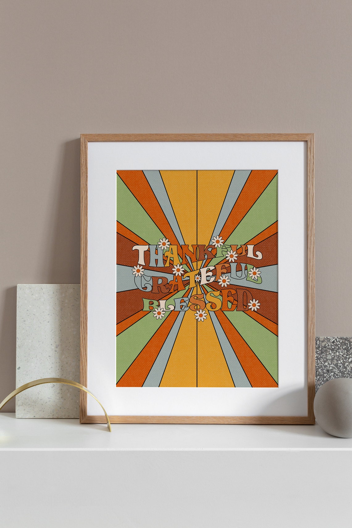 Thankful Grateful Blessed Positive Quote Aesthetic Vintage 70s Poster Wall Art Canvas Prints