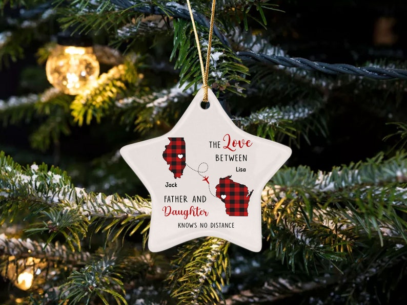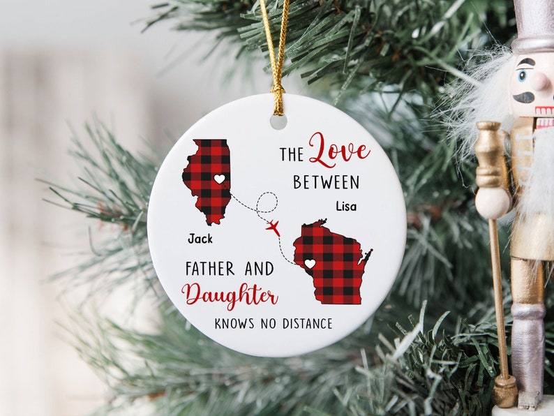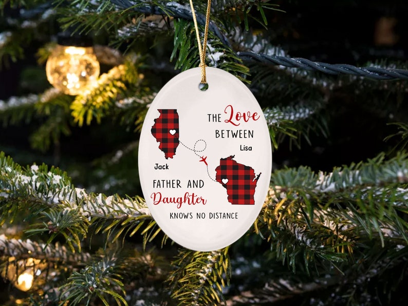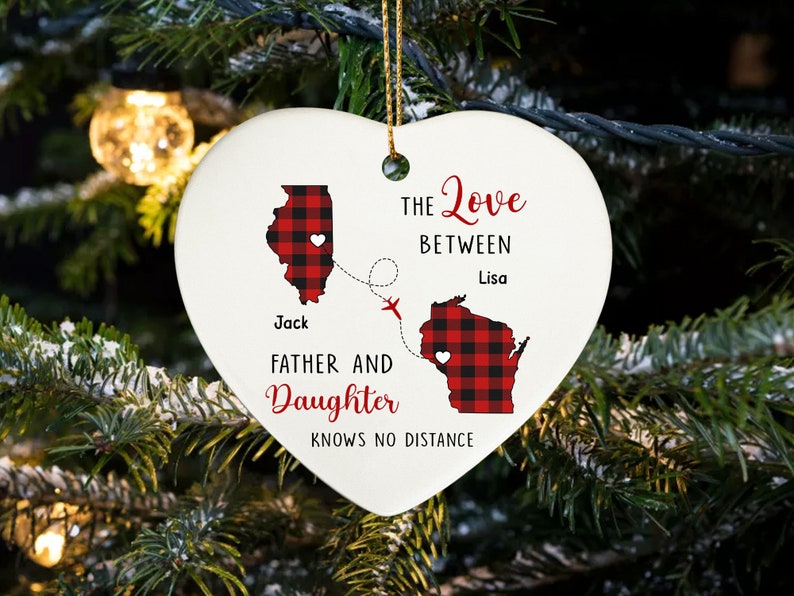 The Love Between A Father And Daughter Knows No Distance Ceramic Ornament, Long Distance, Daughter Moving Christmas Gift, State To State