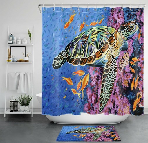 Tropical Fish Shower Curtain Watercolor Sea Turtle Bathroom Decor