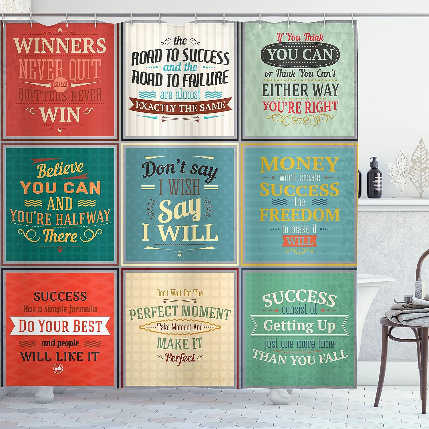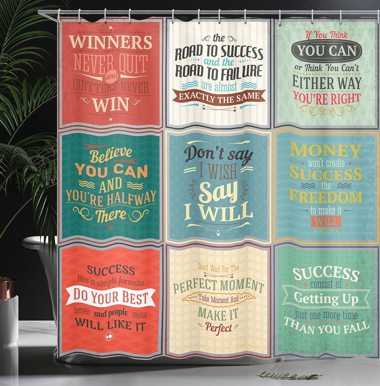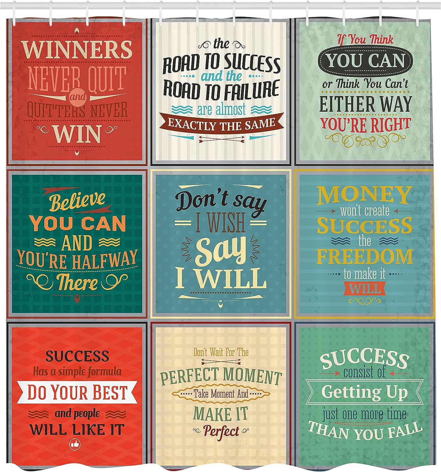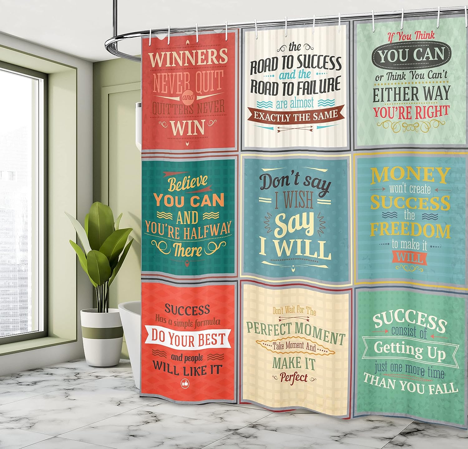 Uplifting Words Shower Curtain, Life Wisdom Art Success Themed Cloth Bathroom Decor, Beige Green Red