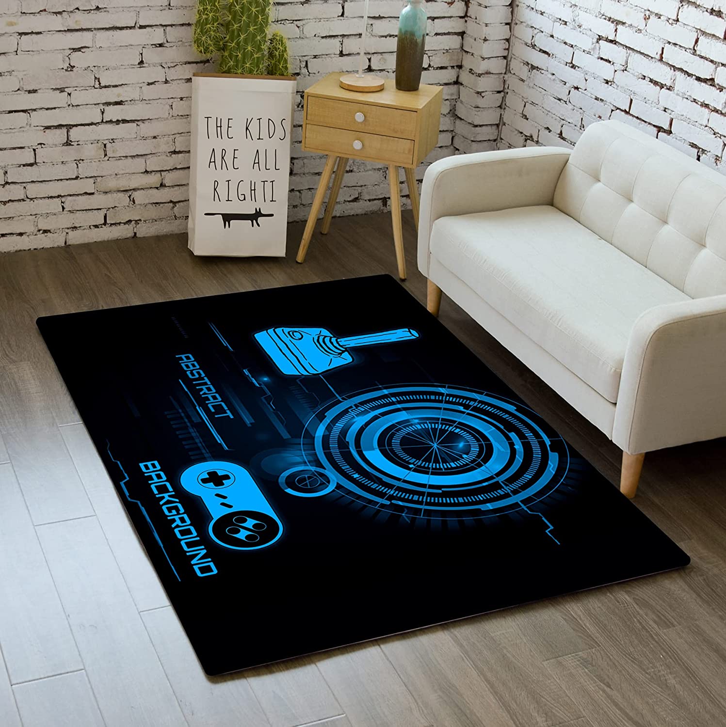Video Game Area Rugs for Living Room Boys Teens Gamepad Joystick Floor Carpet for Gamer Cool Gaming Black Blue Carpet