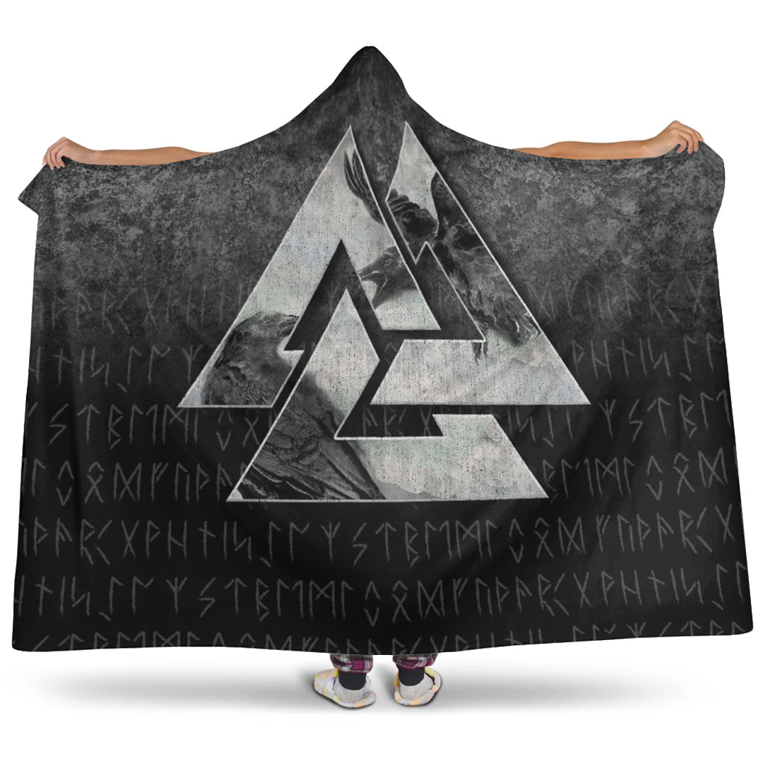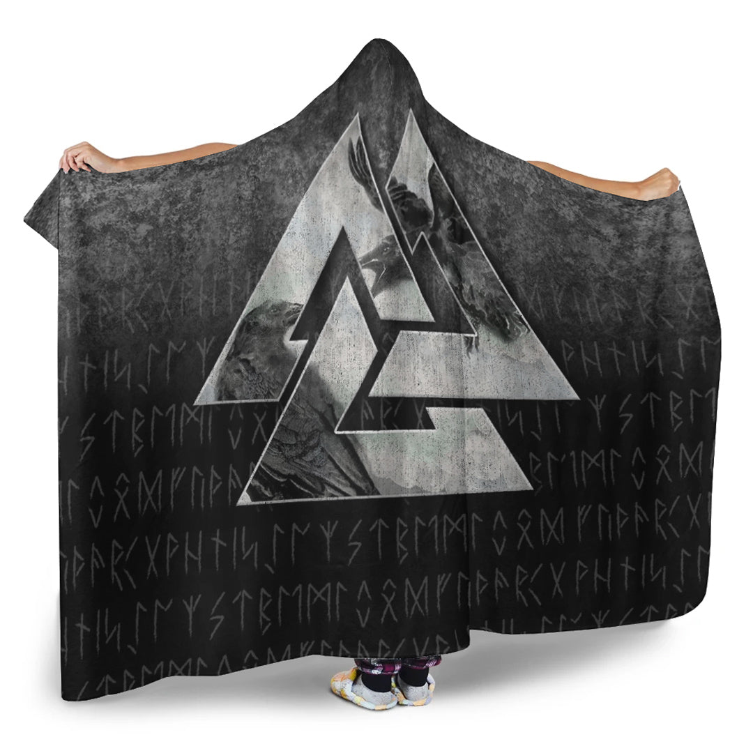 Viking Hooded Blanket, Huginn Muninn Ravens from Odin Viking Hooded Blanket