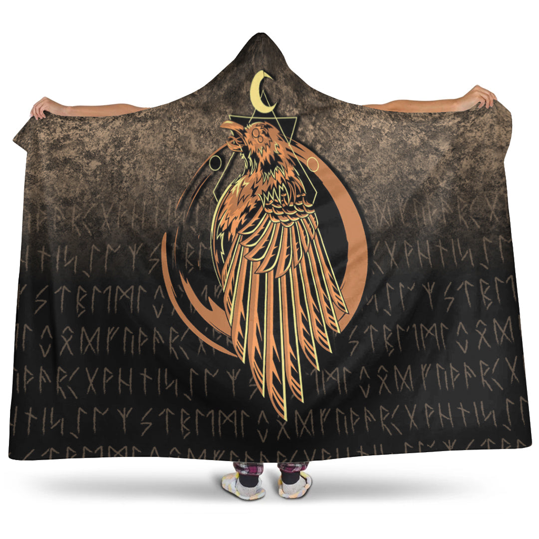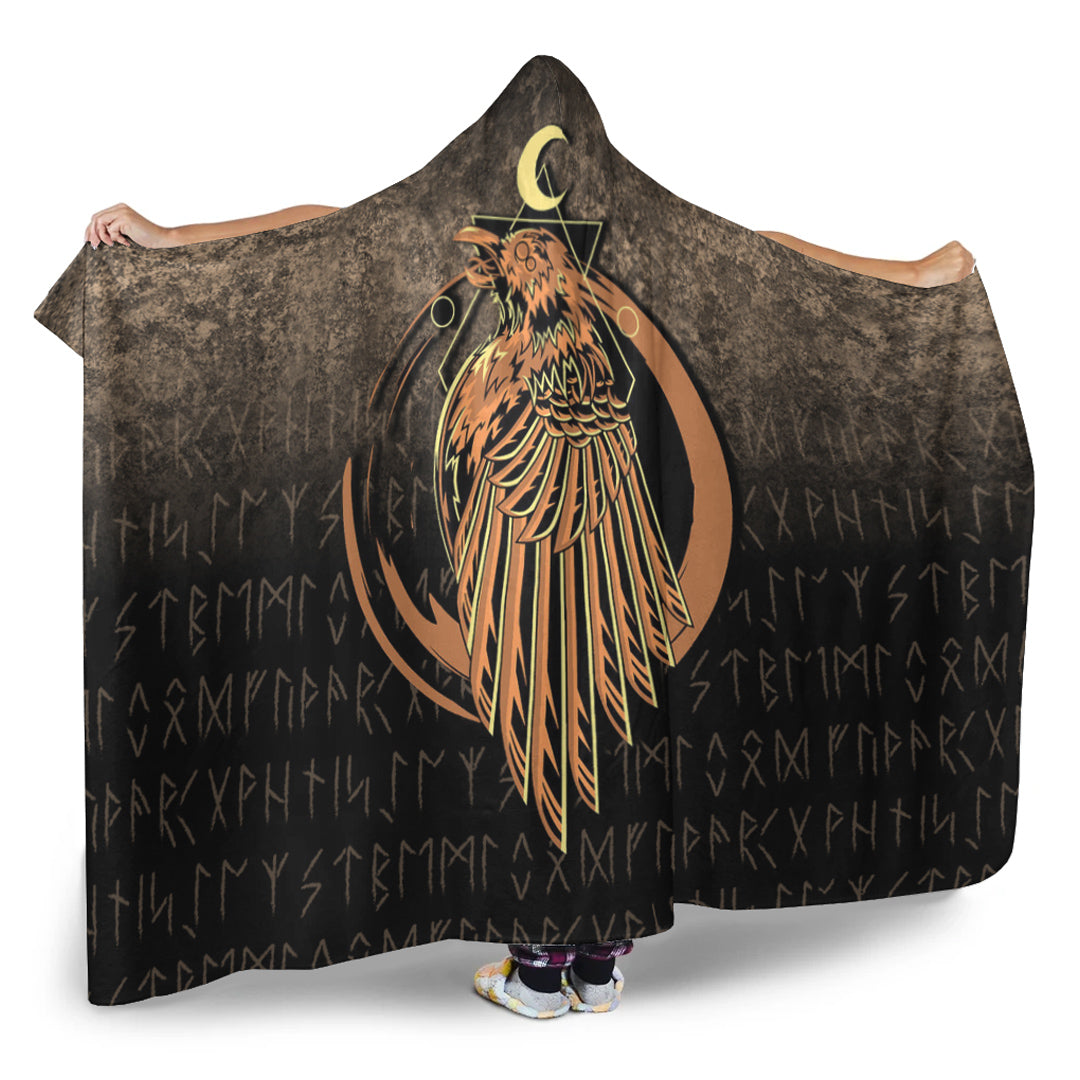 Viking Hooded Blanket, Raven Viking Warrior Valhalla Norse Hooded Blanket