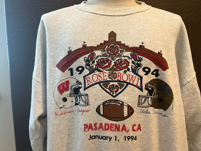 Vintage 90’s 1994 Rose Bowl Wisconsin Badgers Vs Ucla Bruins Grey Crewneck Sweatshirt