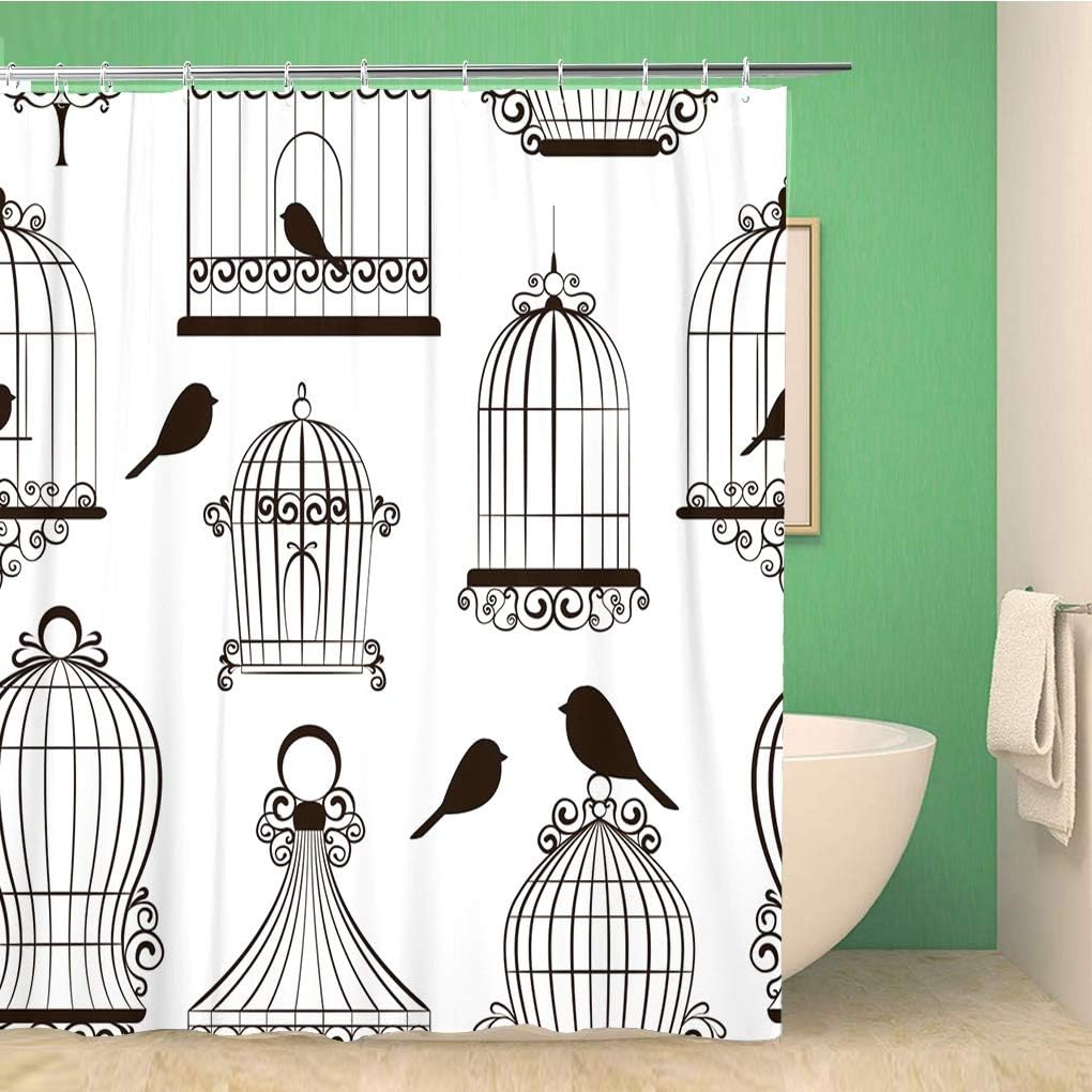 Vintage Bird Cages Pattern Shower Curtain – Brown Birdcage Antique Black Canaryes Bathroom Decor