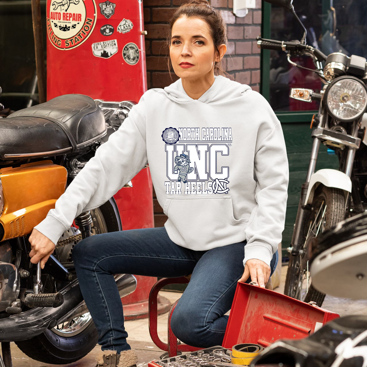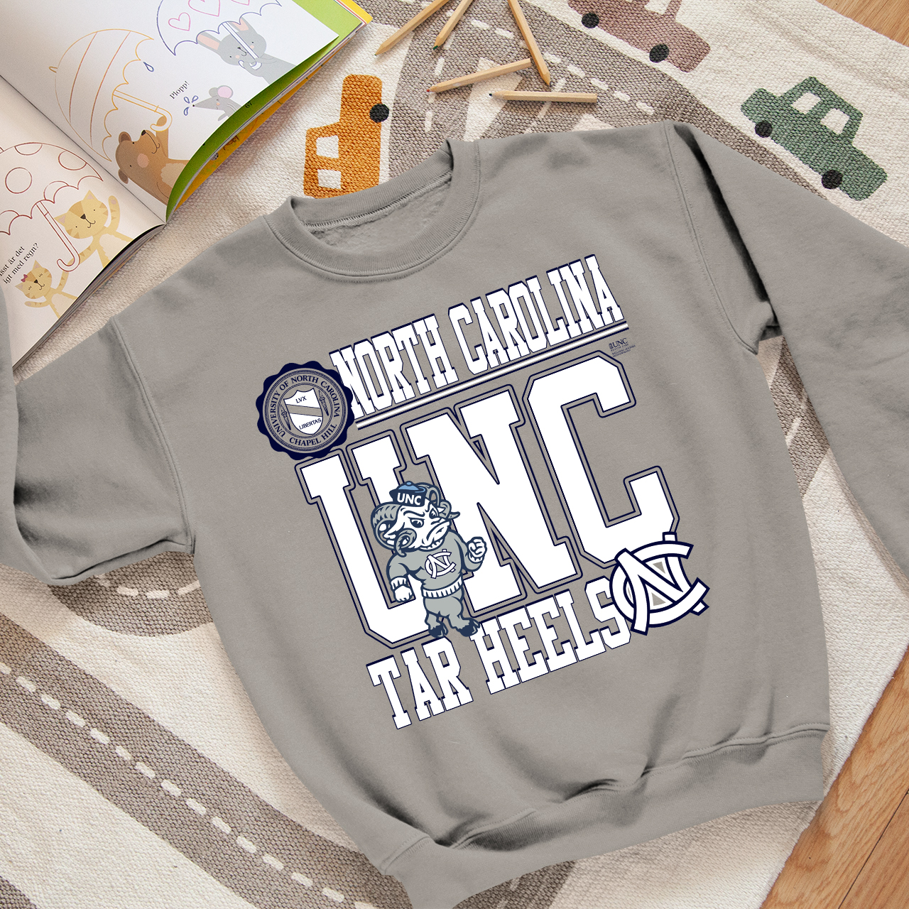 The University of North Carolina Sweatshirt, Shirt, Hoodie is a popular item among college students and fans of the team. It has features team graphics and logos on the front. This one is also marketed as an affordable option for collegiate athletes.