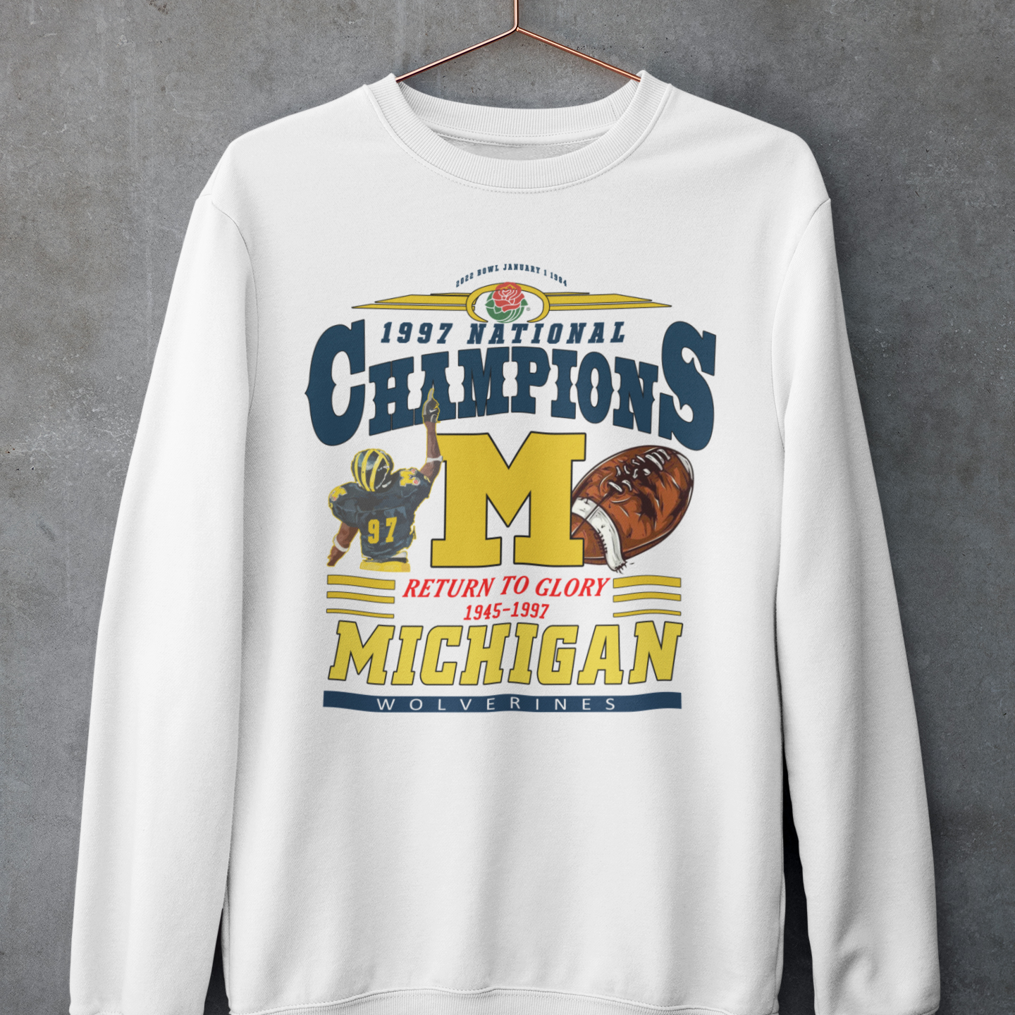 Vintage Michigan Wolverines Football Shirt, Vintage 1997 Michigan Wolverines Rose Bowl Football Crewneck Sweatshirt Hoodie